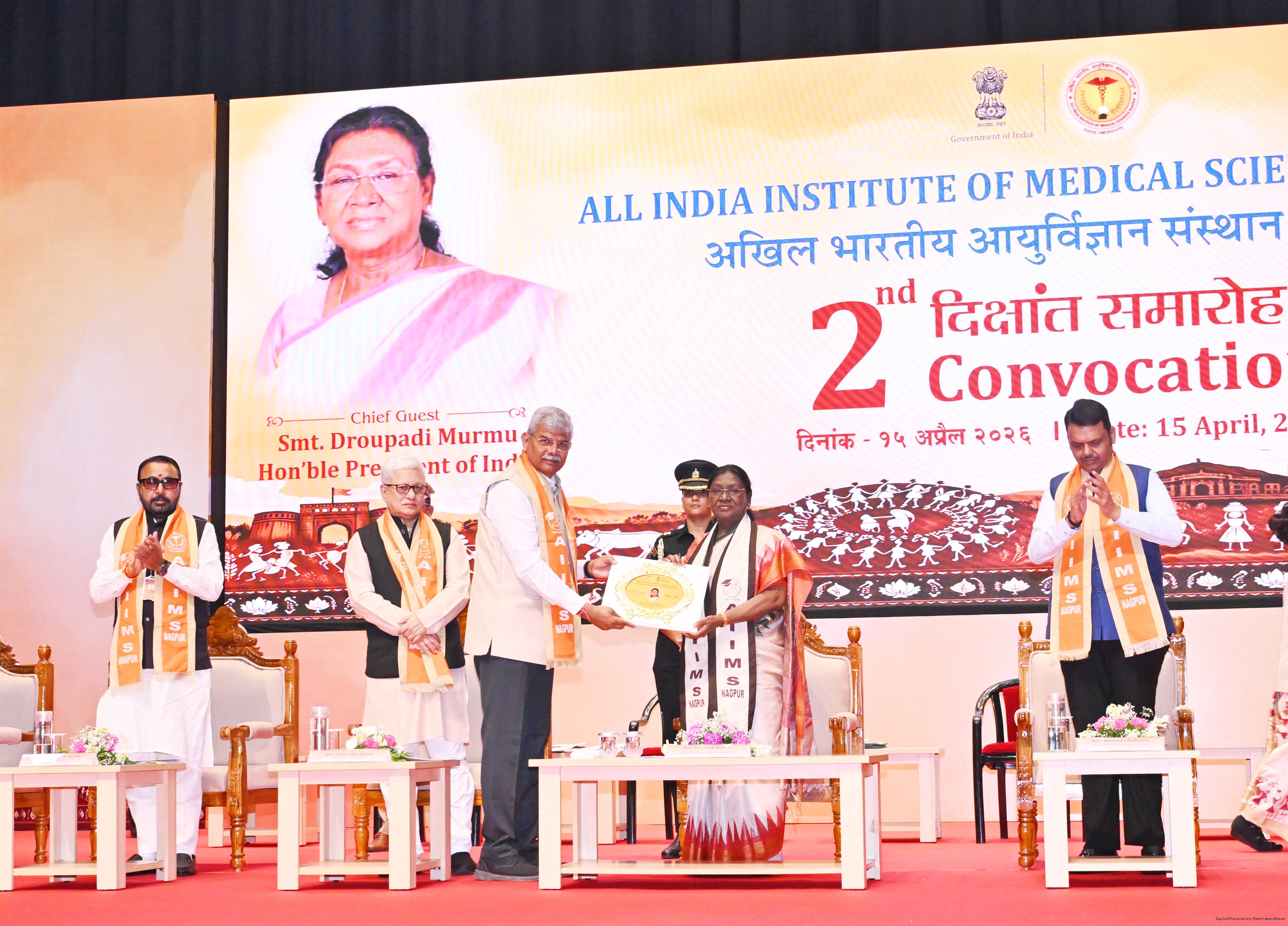 The President of India, Smt Droupadi Murmu graced and addressed the convocation ceremony of AIIMS Nagpur at Nagpur, Maharashtra on April 15, 2026.