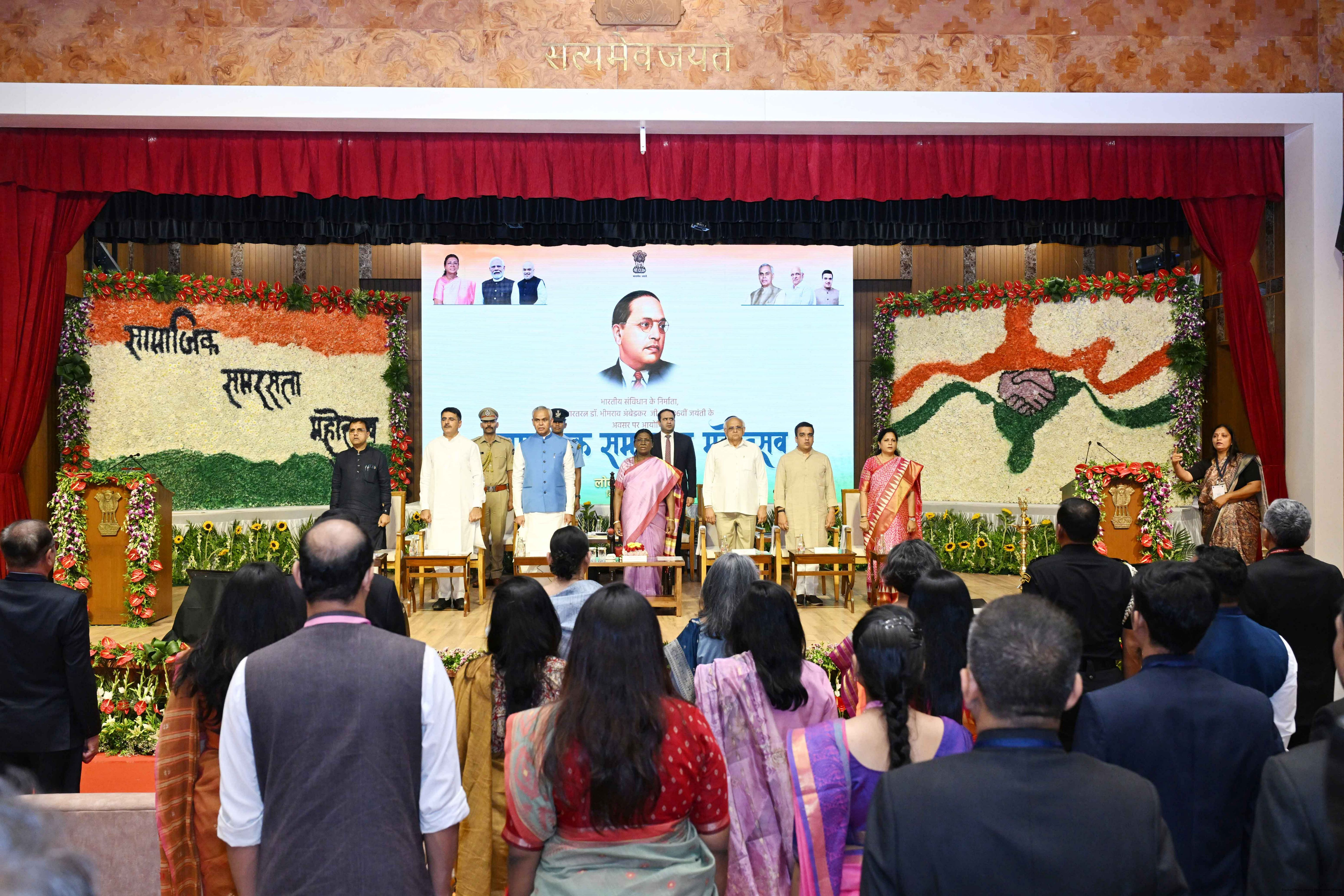 The President of India, Smt Droupadi Murmu graced the ‘Samajik Samrasta Mahotsava’ at Lok Bhavan, Gandhinagar, Gujarat, on the occasion of the birth anniversary of Dr B R Ambedkar on April 14, 2026.