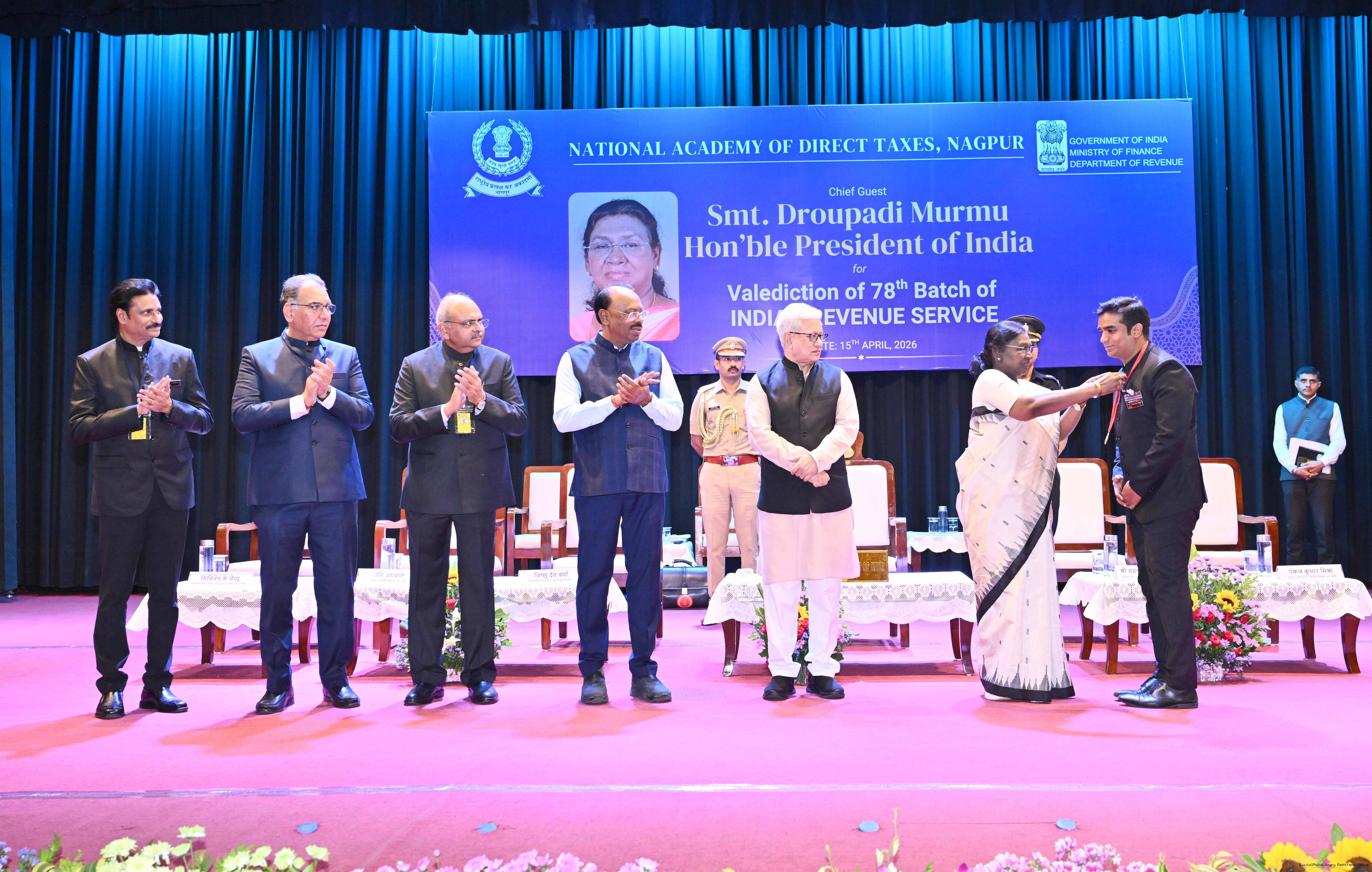 The President of India, Smt Droupadi Murmu graced the valediction ceremony of the 78th batch of Indian Revenue Service (Income Tax) Officer Trainees at the National Academy of Direct Taxes, Nagpur, Maharashtra on April 15, 2026.