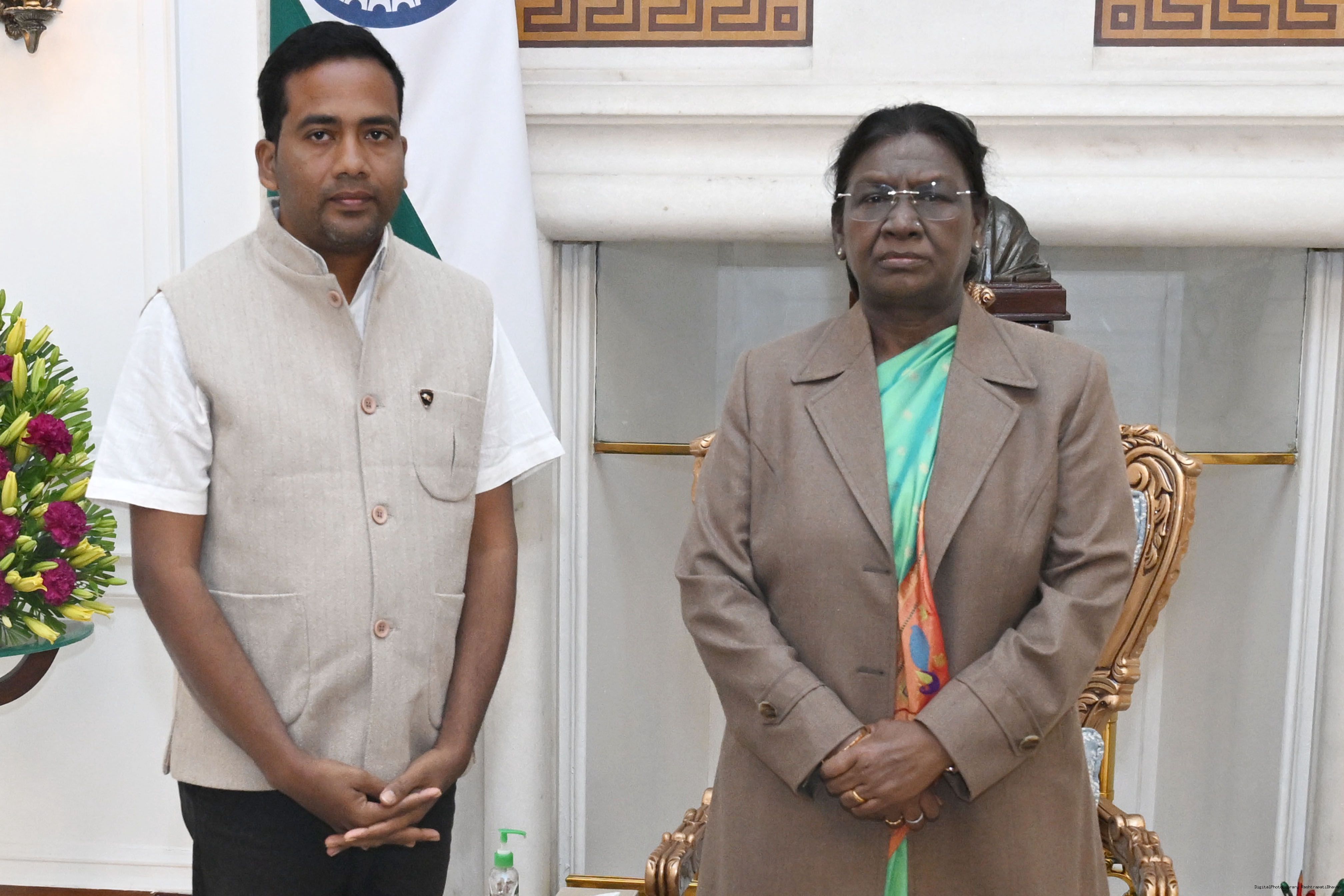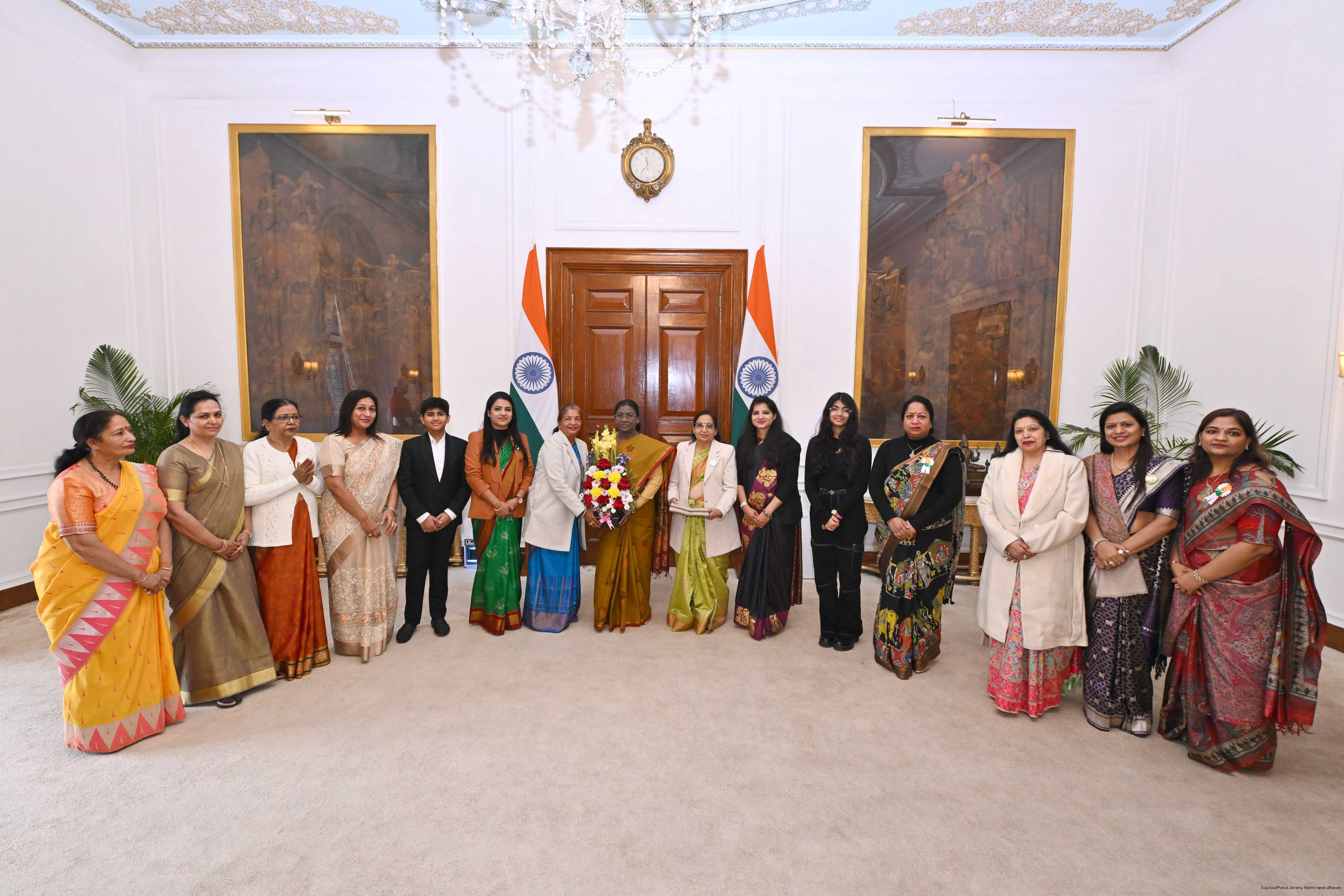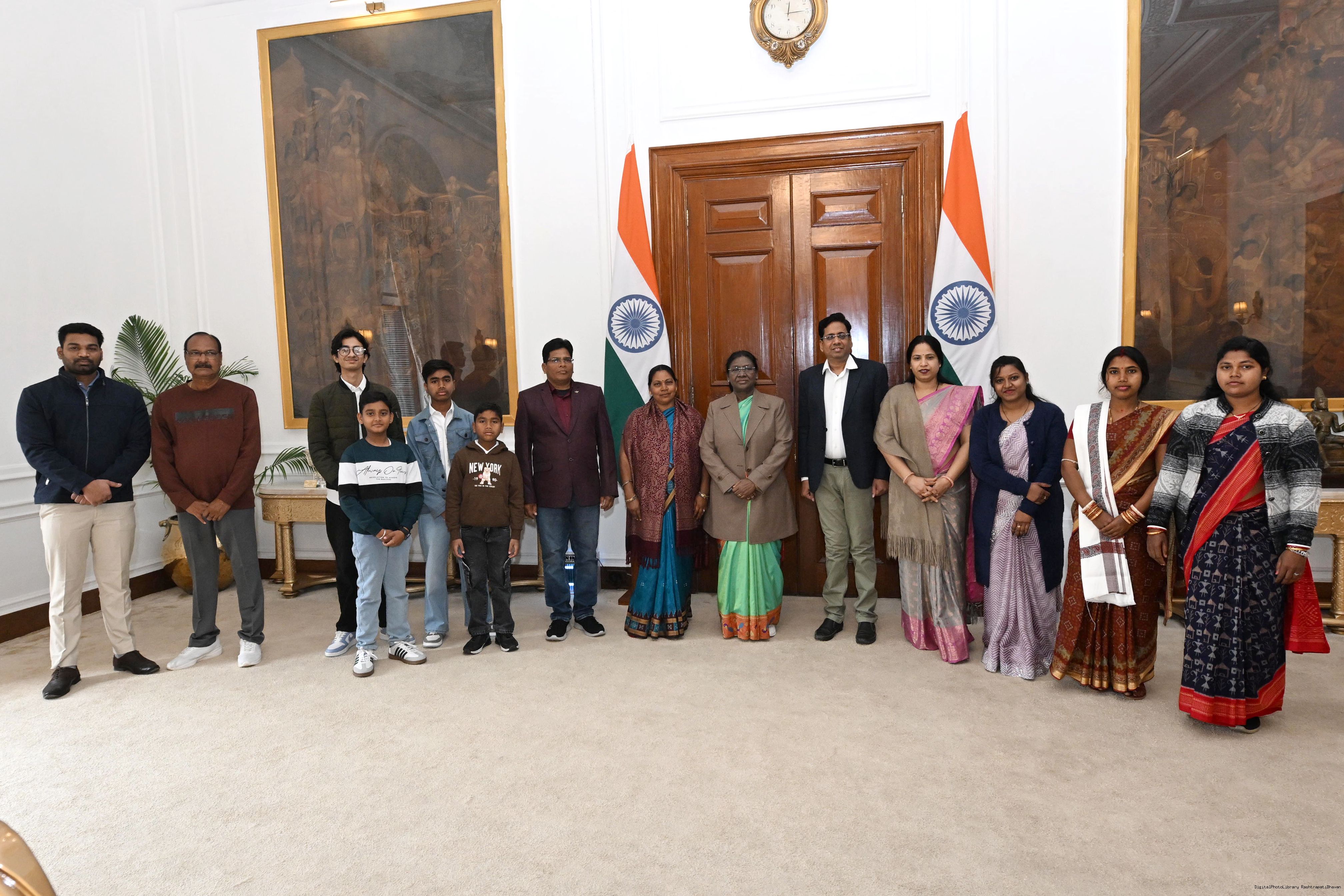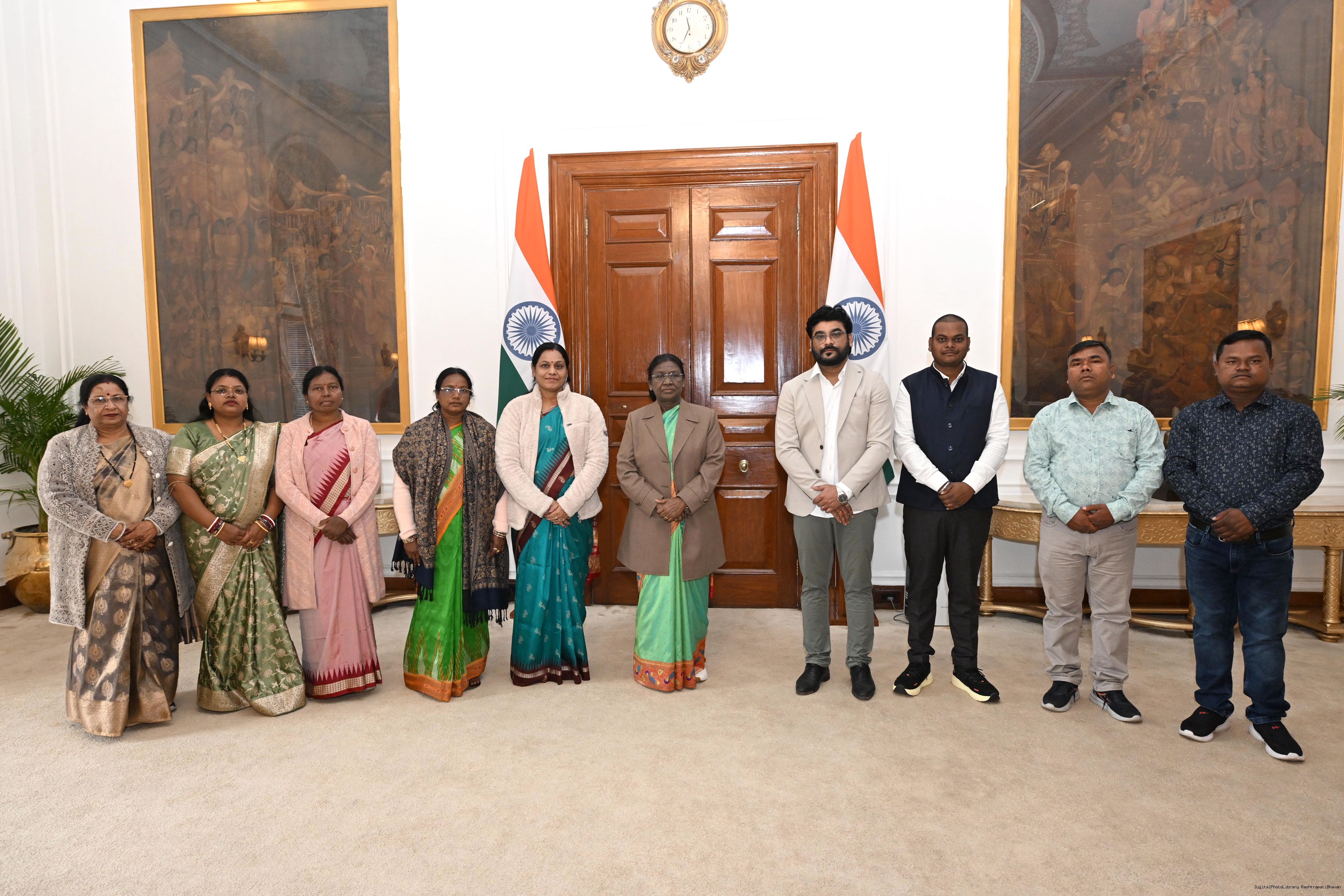 Ms Durga Ch Marndi along with Ms Sudeshna Dhal and others meeting with the President of India, Smt Droupadi Murmu at Rashtrapati Bhavan on January 19, 2026.