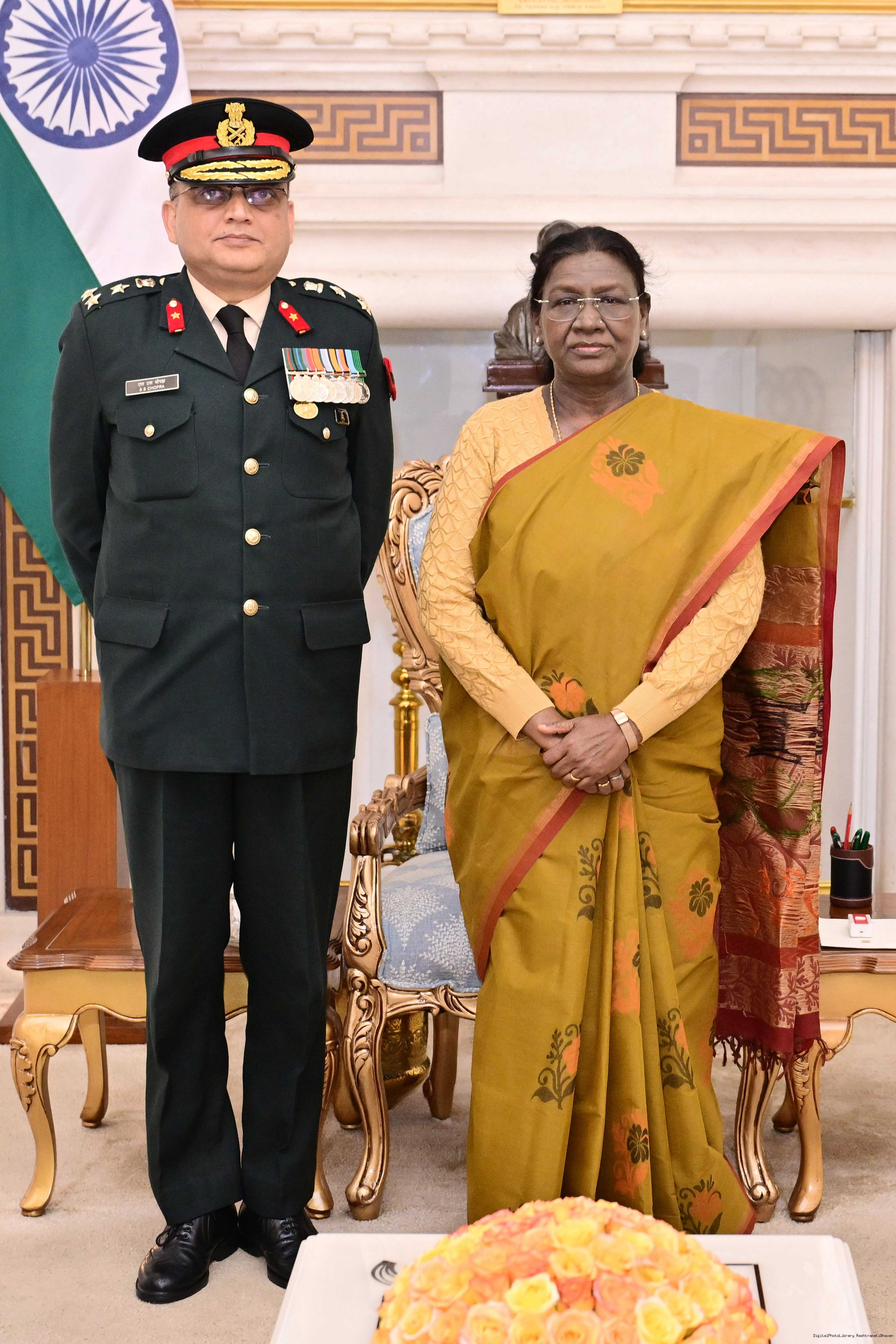Brigadier Sukhbir Singh Chopra, Commandant Dean, Army Dental Centre Research Referral, New Delhi meeting with the President of India, Smt Droupadi Murmu at Rashtrapati Bhavan on January 22, 2026.