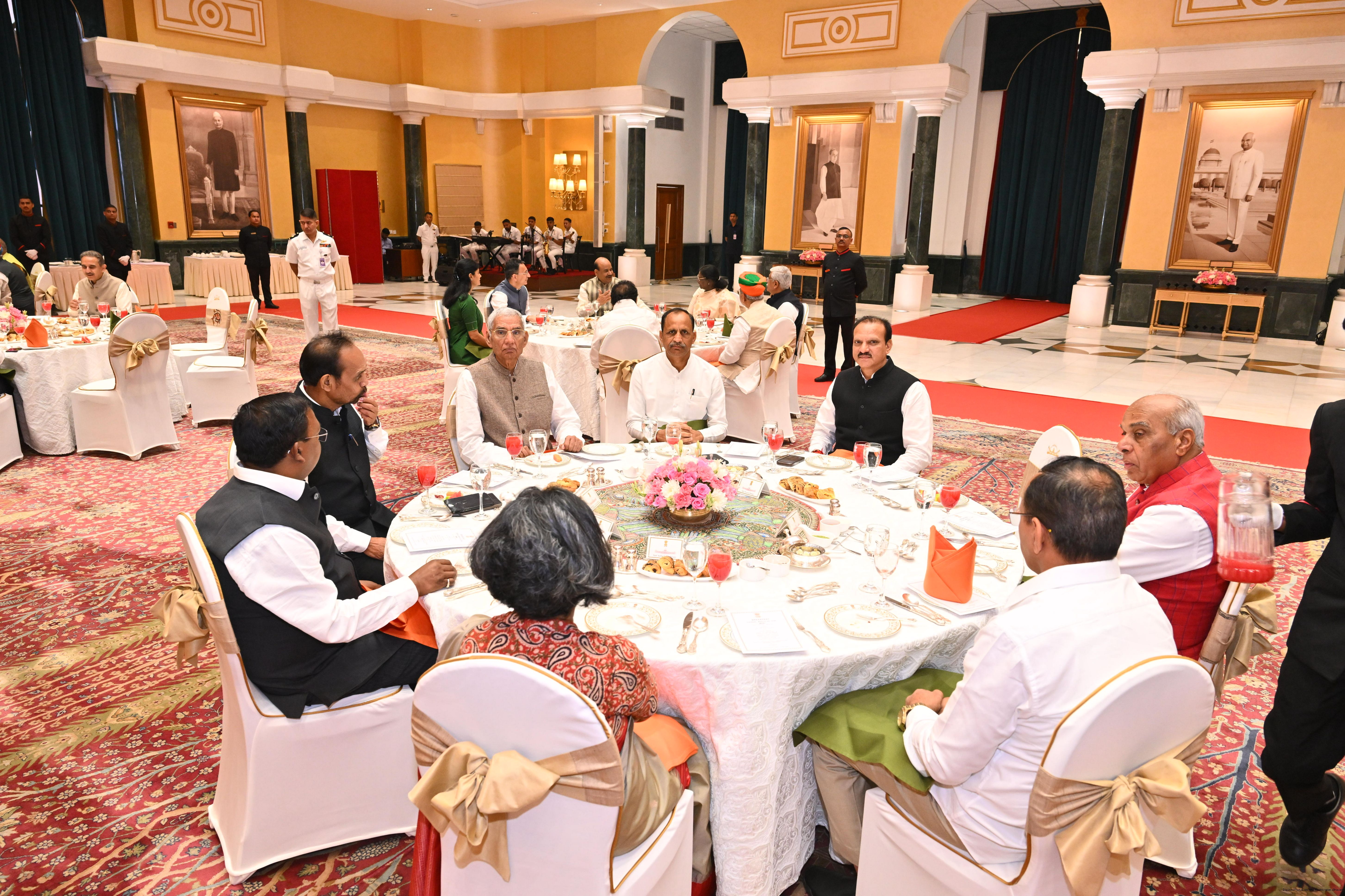The President of India, Smt Droupadi Murmu hosted Members of Parliament from Uttar Pradesh, Rajasthan, Mizoram, Nagaland, Tripura, Sikkim and Jharkhand for breakfast at Rashtrapati Bhavan Cultural Centre on March 24, 2026.