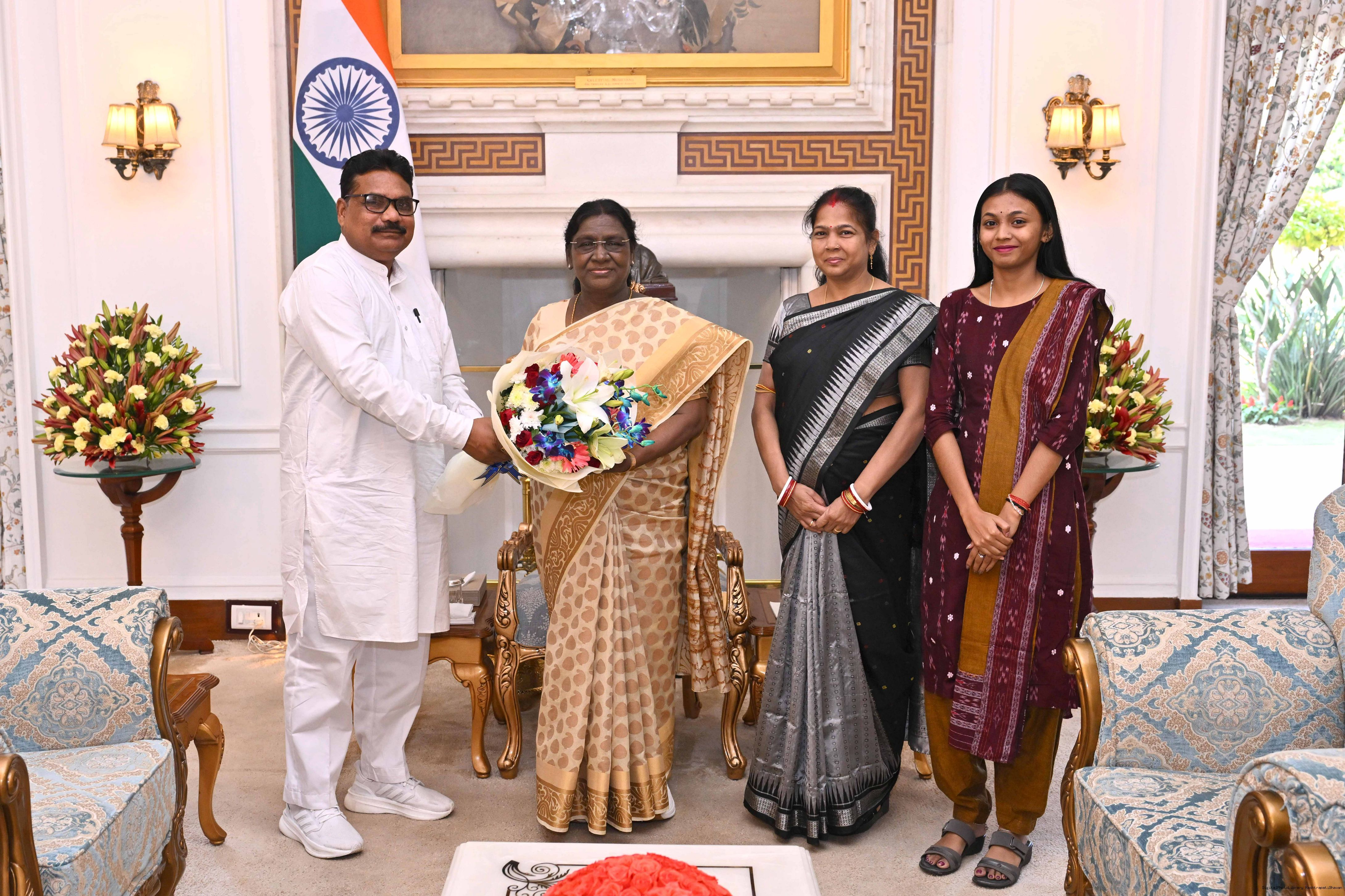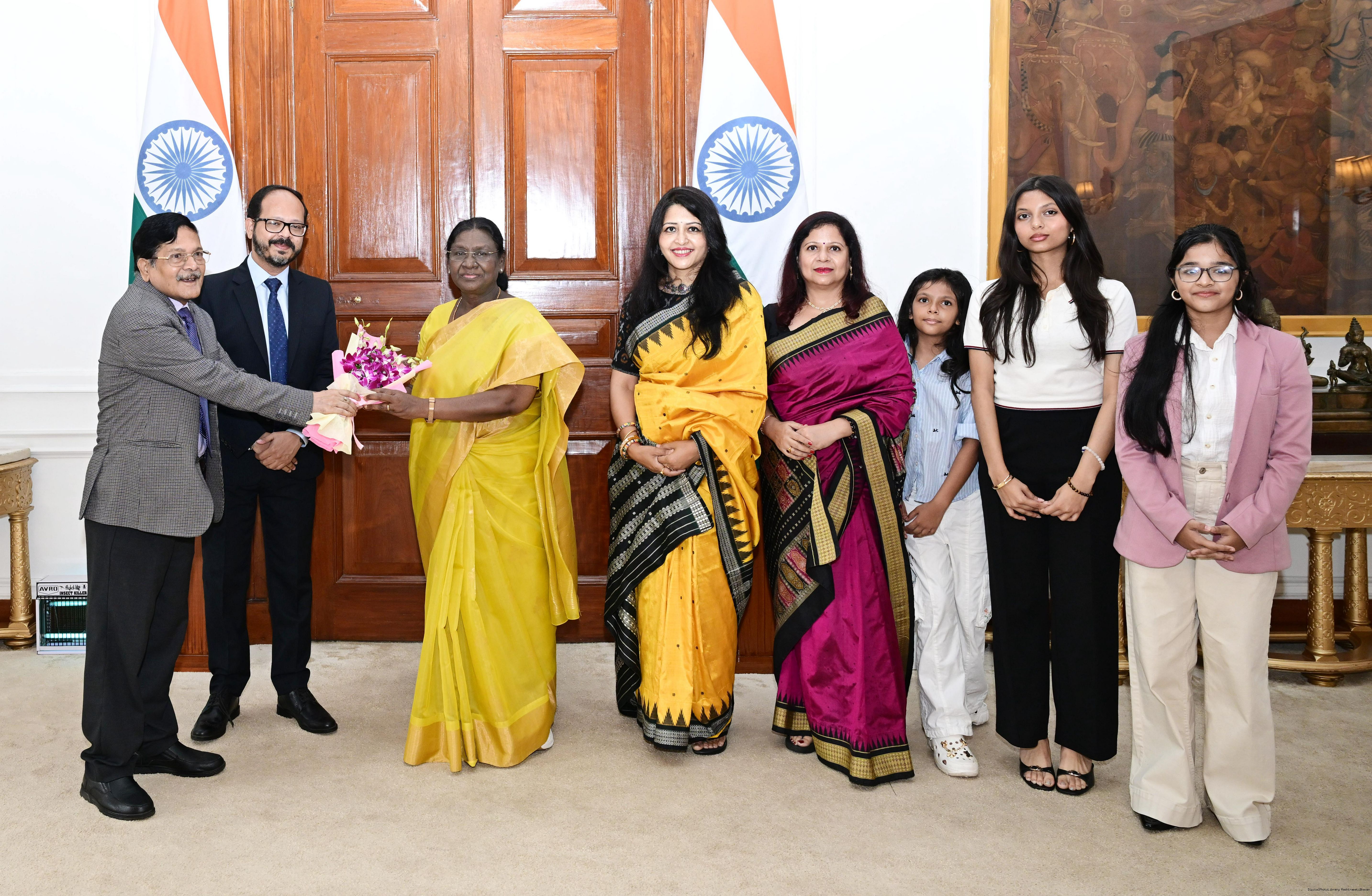 Shri Manoj Kumar Das along with others meeting with the President of India, Smt Droupadi Murmu at Rashtrapati Bhavan on March 25, 2026.