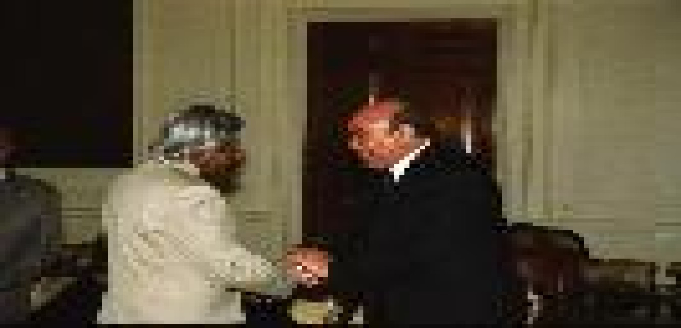 The President of India, Dr A P J Abdul Kalam interacting with the President of the Republic of Kyrgyzstan, His Excellency Mr Askar Akaev at the Morning Room of Rashtrapati Bhavan in New Delhi on Aug 07, 2002