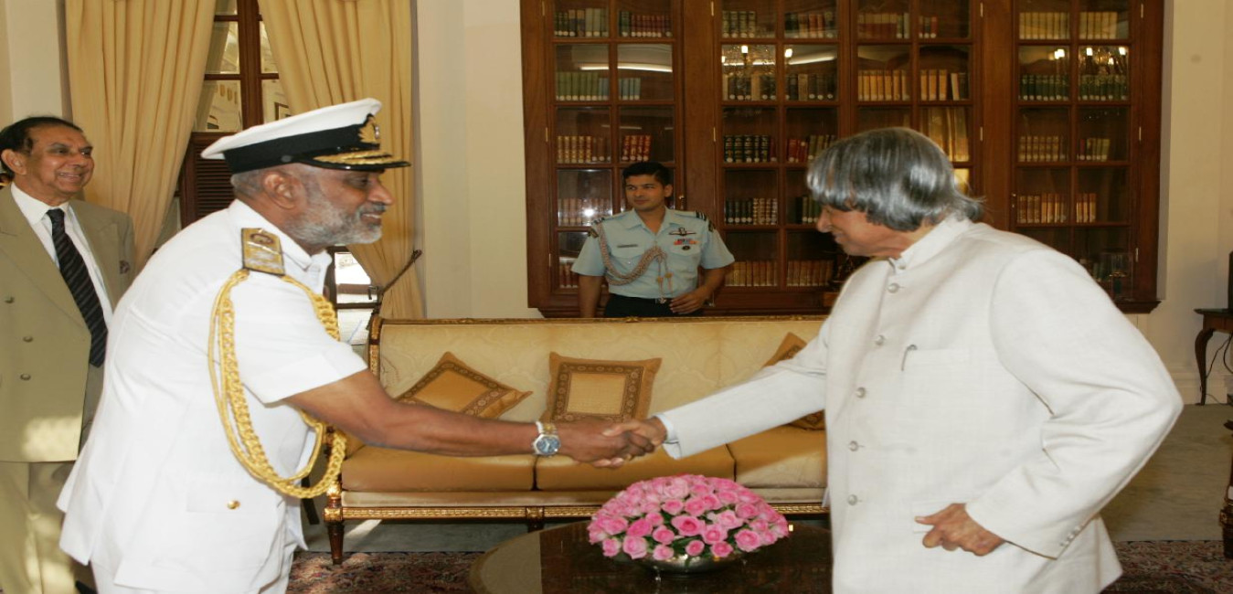 The Chief of Defence Staff, Sri Lanka, Vice Admiral D Sandagiri calling on the President of India, Dr A P J Abdul Kalam at Rashtrapati Bhavan in New Delhi on June 06, 2005