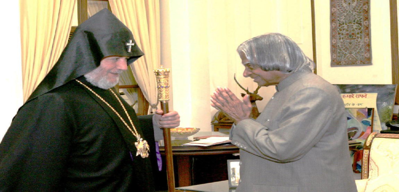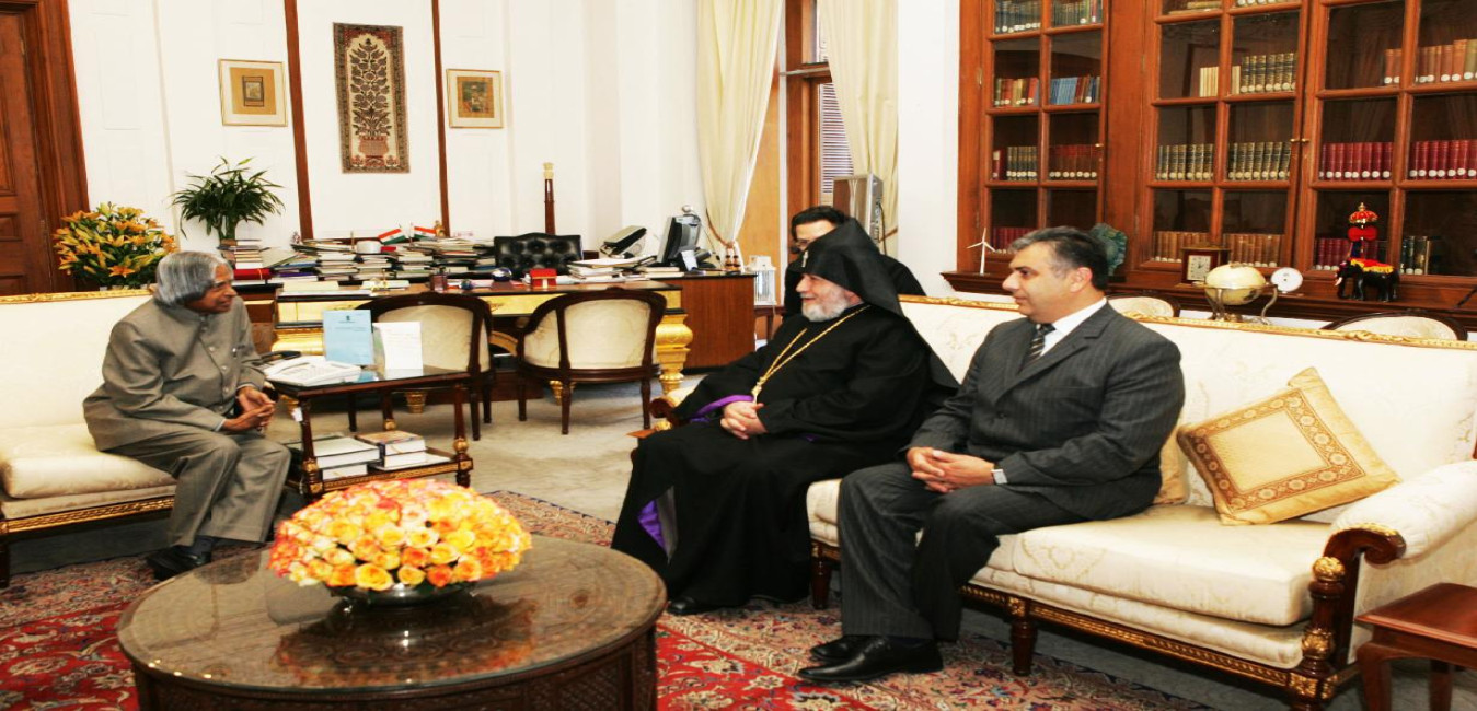 The Supreme Patriarch and Catholicos of All Armenians HH Karekin-II calling on the President of India, Dr A P J Abdul Kalam at the Morning Room of Rashtrapati Bhavan in New Delhi on March 04, 2007