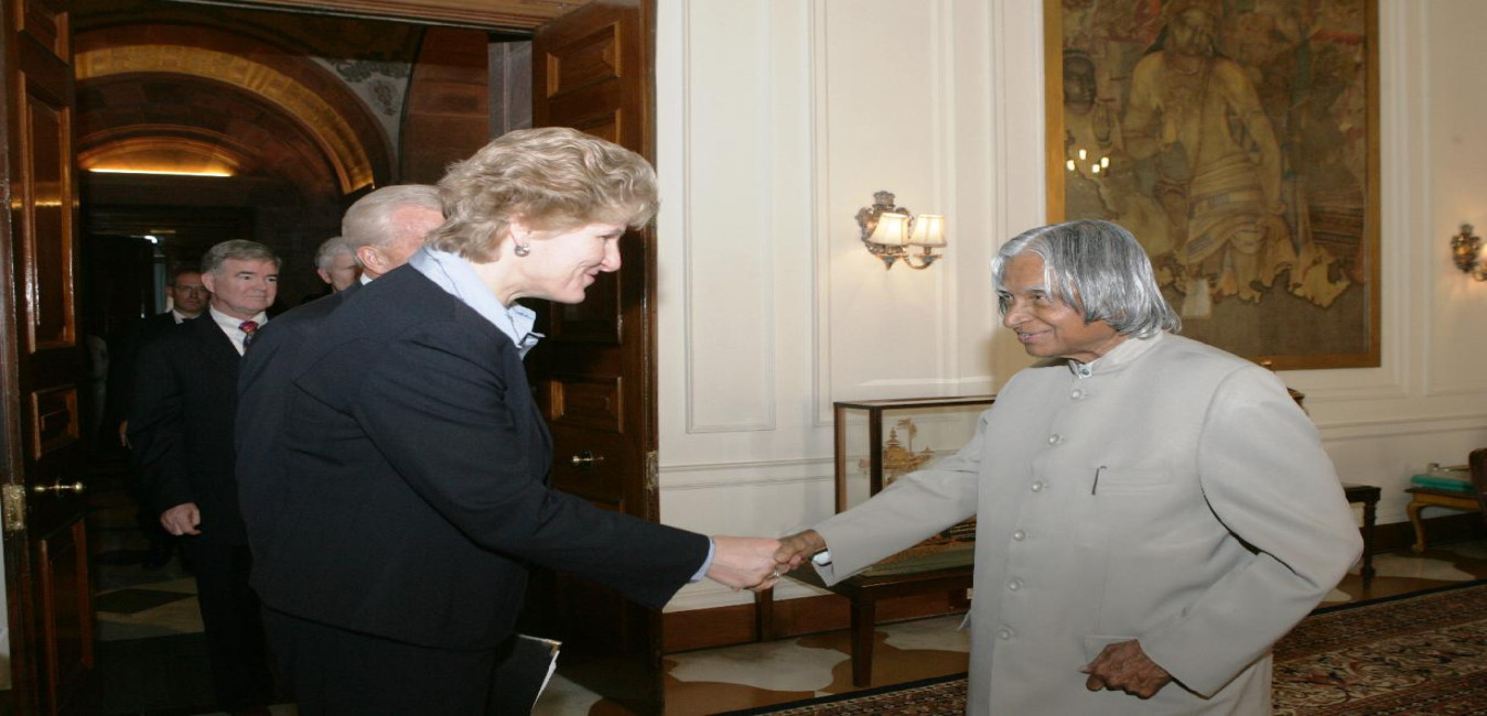 The President of India, Dr A P J Abdul Kalam meeting with the US Under Secretary for Public Diplomacy and Public Affairs, Ms Karen P Hughes and other at the Morning Room of Rashtrapati Bhavan in New Delhi on March 28, 2007