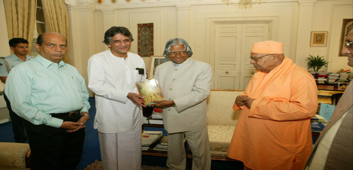 The President of India, Dr A P J Abdul Kalam presenting the Book "Wisdom of Vashishtha" by Shri L N Jhunjhunwala and others at Rashtrapati Bhavan in New Delhi on Oct 18, 2004