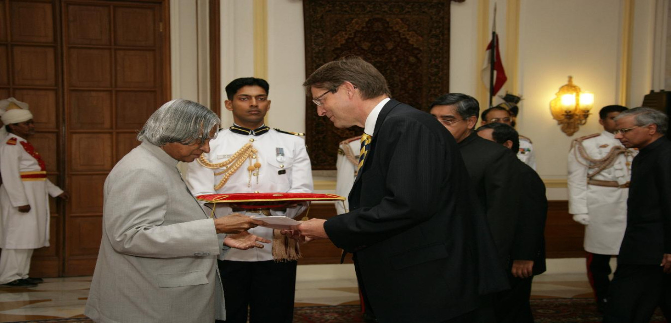 The Ambassador-Designate of Sweden to India, HE Mr Lars Olof Lindgren presenting his credentials to the President of India, Dr A P J Abdul Kalam at the Yellow Drawing Room of Rashtrapati Bhavan in New Delhi on March 13, 2007