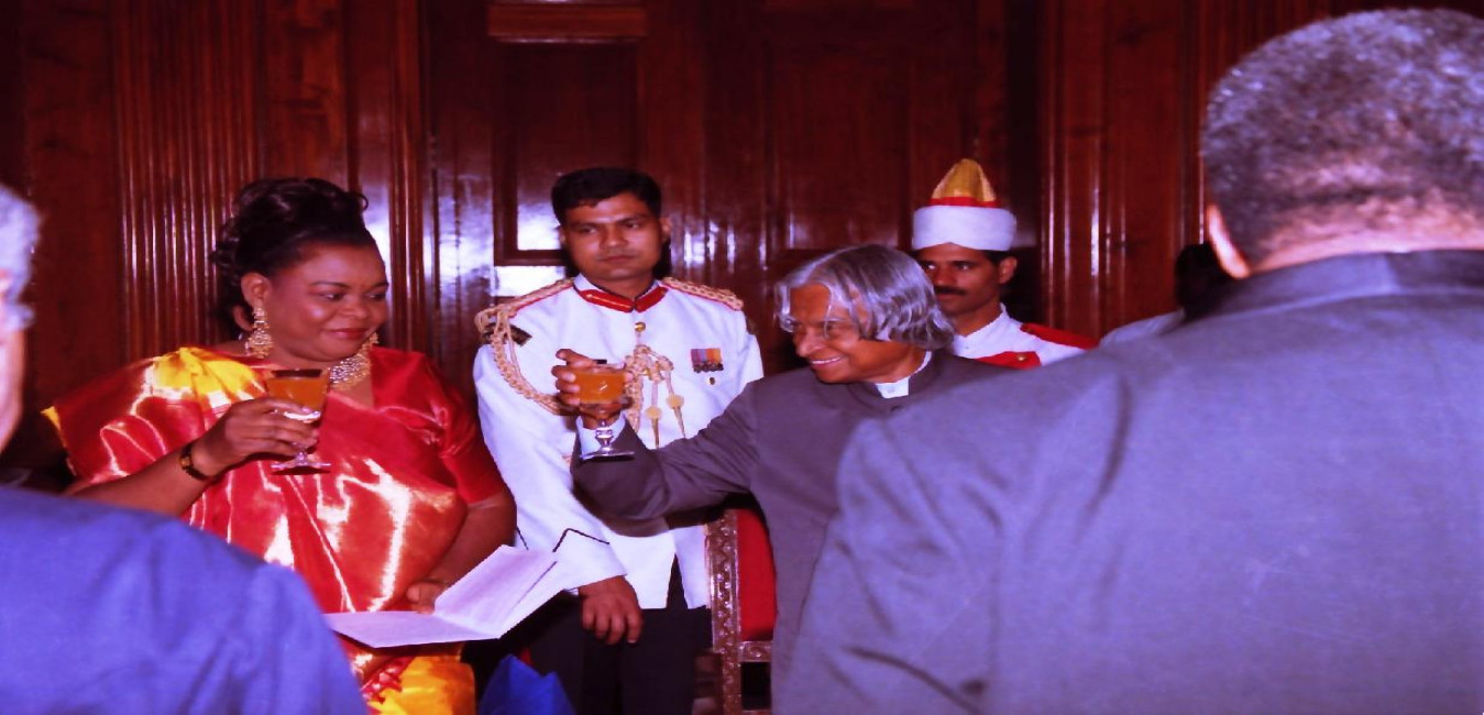 The President of India, Dr A P J Abdul Kalam at the Banquet Hosted in Honour of the Distinguished Guests President of the Republic of Zambia, His Excellency Mr Levy P Mwanawasa and his wife Mrs Maureen Mwanawasa at the Banquet Hall of Rashtrapati Bhavan in New Delhi on April 21, 2003