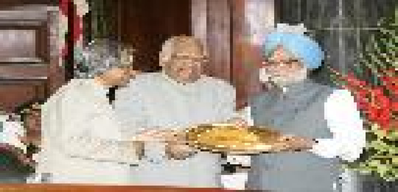 The President of India, Dr A P J Abdul Kalam giving away the Outstanding Parliamentarian Award for the Years 1999, 2000, 2001 and 2002 to Shri L K Advani, Shri Arjun Singh, Shri Jaswant Singh and Dr Manmohan Singh Respectively in the Central Hall of Parliament House in New Delhi on March 21, 2005