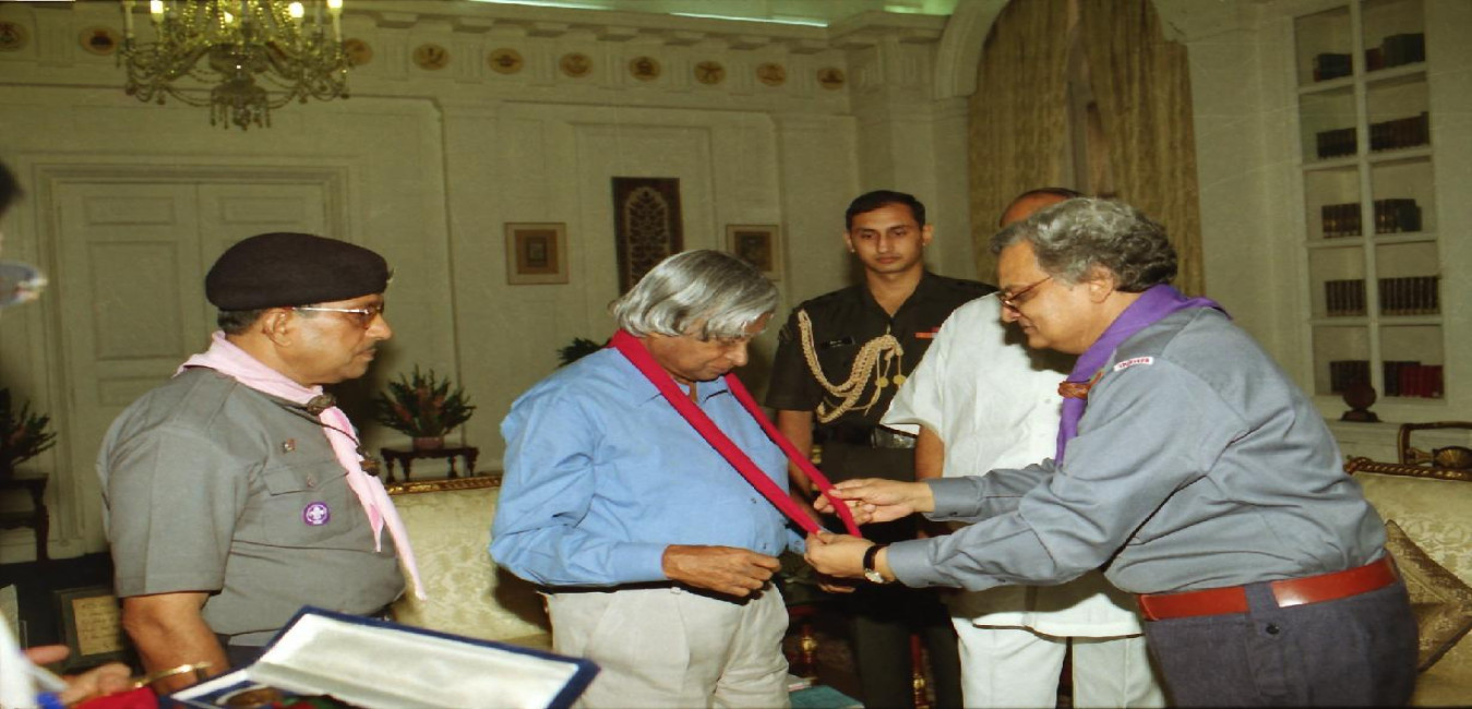 The President of India, Dr A P J Abdul Kalam with Shri Sharad Pawar, MP(LS) and others of Bharat Scouts & Guides at Rashtrapati Bhavan in New Delhi on Sep 09, 2002