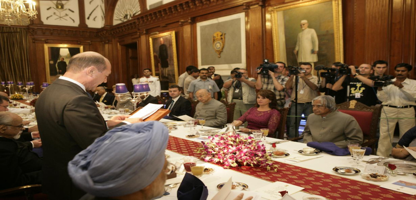 The President of India, Dr A P J Abdul Kalam at the Banquet Hosted in Honour of the President of Romanian, HE Mr Traian Basescu and his wife Mrs Maria Basescu at the Banquet Hall of Rashtrapati Bhavan in New Delhi on Oct 23, 2006