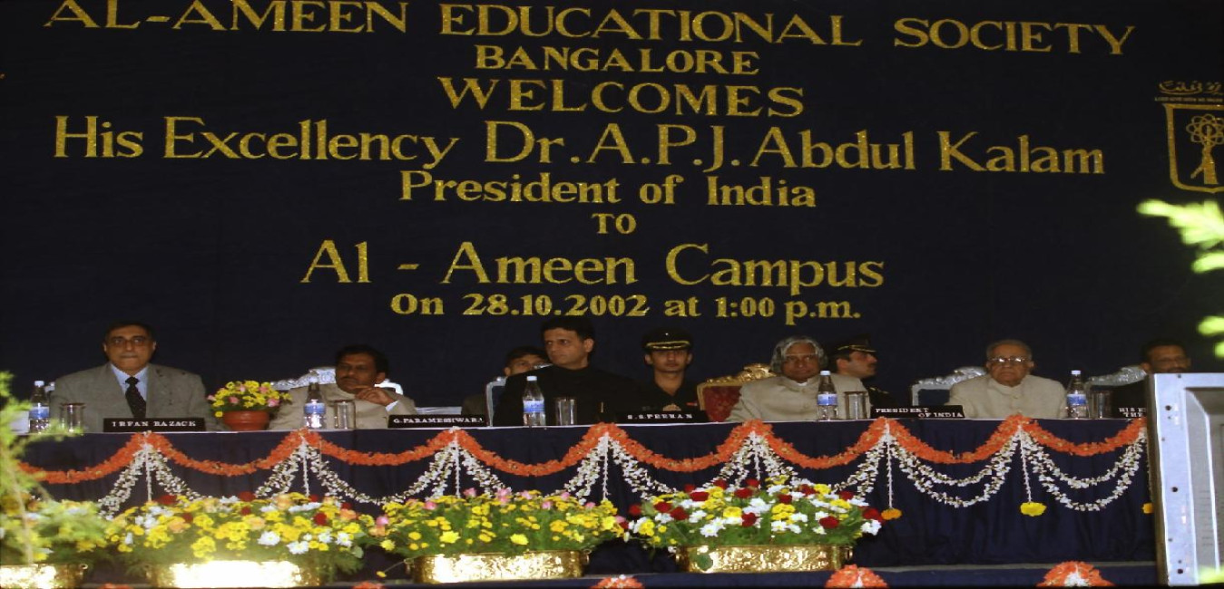 The President of India, Dr A P J Abdul Kalam interacting with the Students at Al-Ameen Educational Society at Bangalore in Karnataka on Oct 28, 2002