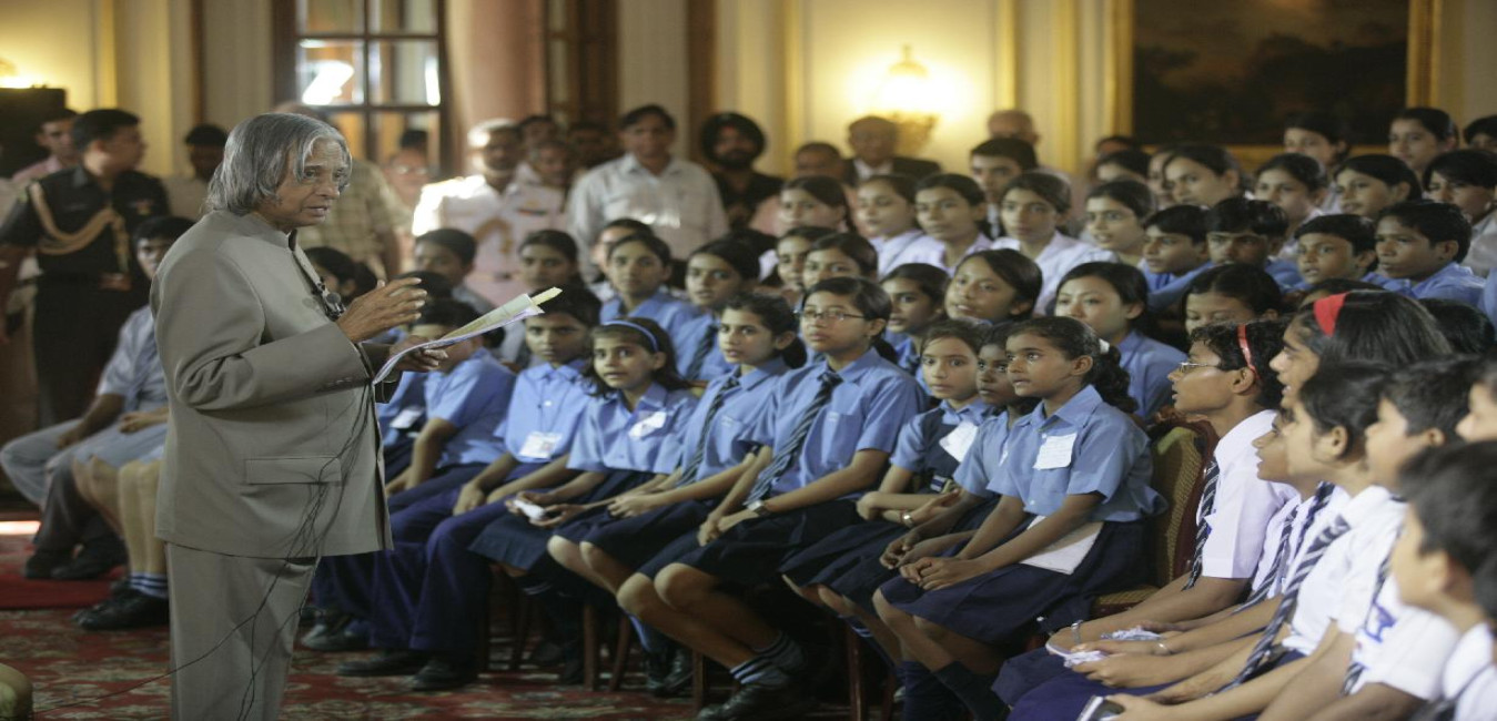 The Students from Salwan School Public School, Narina Vihar and Salwan Girls Sr Sec School, Rajinder Nagar calling on the President of India, Dr A P J Abdul Kalam at the Yellow Drawing Room of Rashtrapati Bhavan in New Delhi on Aug 04, 2006