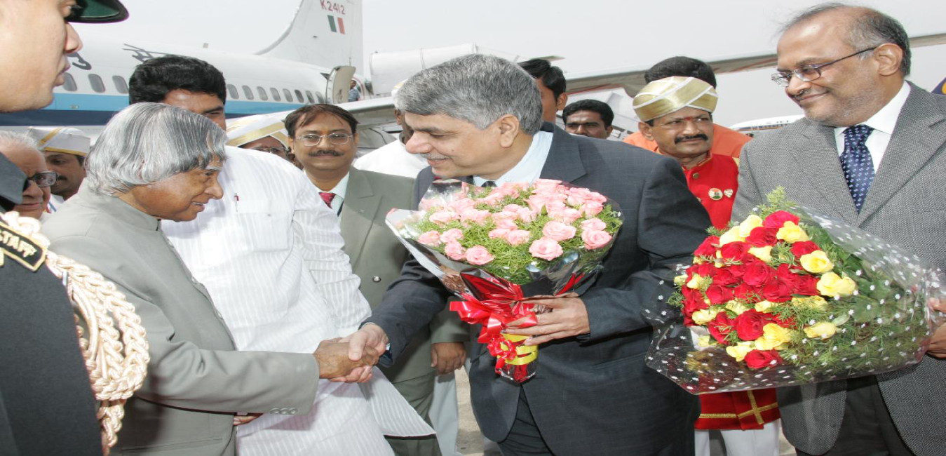 The President of India, Dr A P J Abdul Kalam being welcomed by the Governor of Karnataka, Shri T N Chaturvedi at Bangalore Airport in Karnataka on June 08, 2007