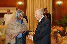 The President of Italy, HE Mr Carlo Azeglio Ciampi and his wife Mrs Franca Ciampi calling on the President of India, Dr A P J Abdul Kalam at the North Drawing Room of Rashtrapati Bhavan in New Delhi on Feb 14, 2005
