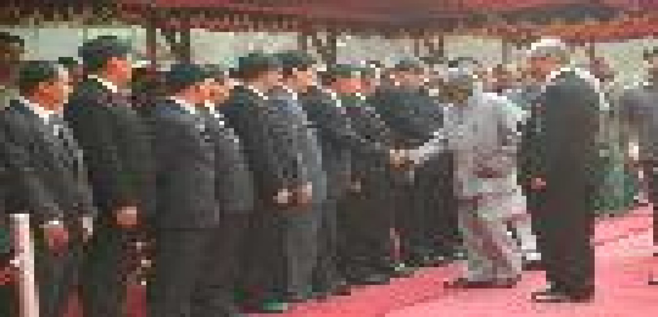 The President of India, Dr A P J Abdul Kalam at the Ceremonial Reception of the Chairman, SPDC of Union of Myanmar, HE Senior General Than Shwe and Daw Kyaing Kyaing at the Forecourt of Rashtrapati Bhavan in New Delhi on Oct 25, 2004