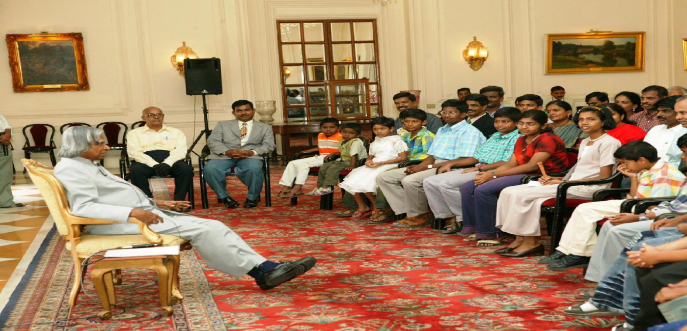 The President of India, Dr A P J Abdul Kalam addressing to the Children at Raj Bhavan Dehradun in Uttaranchal on June 01, 2004