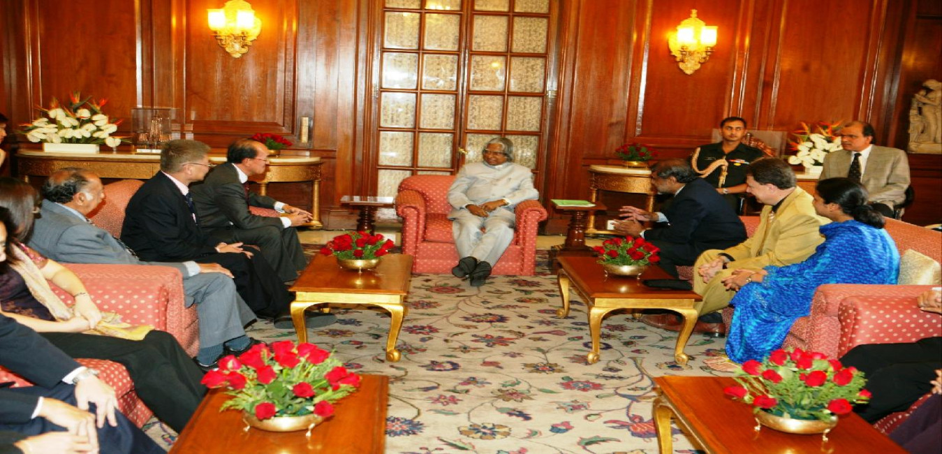 The Members of Singapore Press Club calling on the President of India, Dr A P J Abdul Kalam at the Committee Room of Rashtrapati Bhavan in New Delhi on March 08, 2004