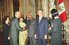 The President of India, Shri K R Narayanan being received by the Peruvian President, HE Mr Alberto Fujimori at his Ceremonial Reception at Lima in Peru on April 30, 1998