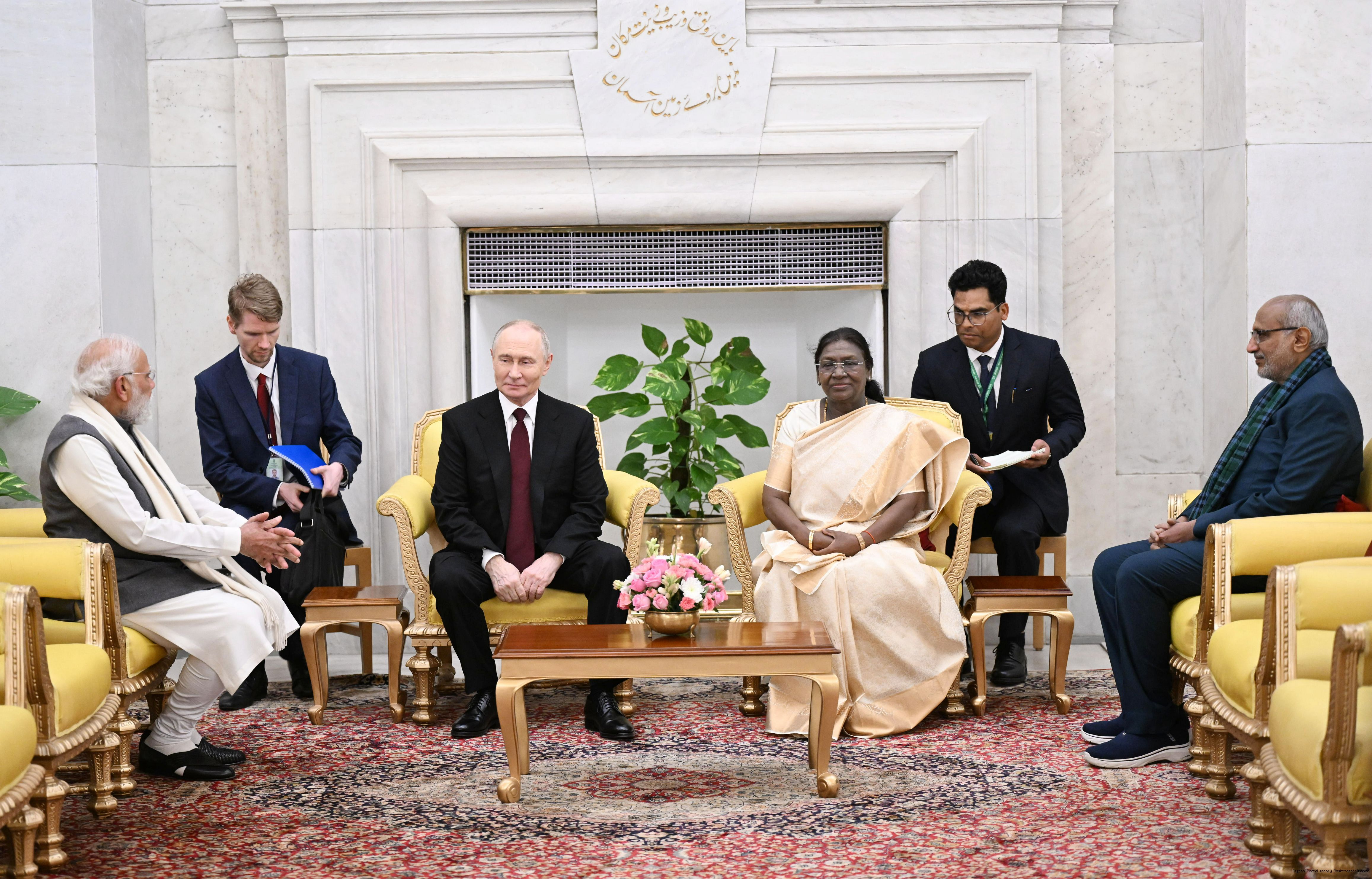 The President of India, Smt Droupadi Murmu, received H.E. Mr Vladimir Putin, President of the Russian Federation, at Rashtrapati Bhavan on December 05, 2025.