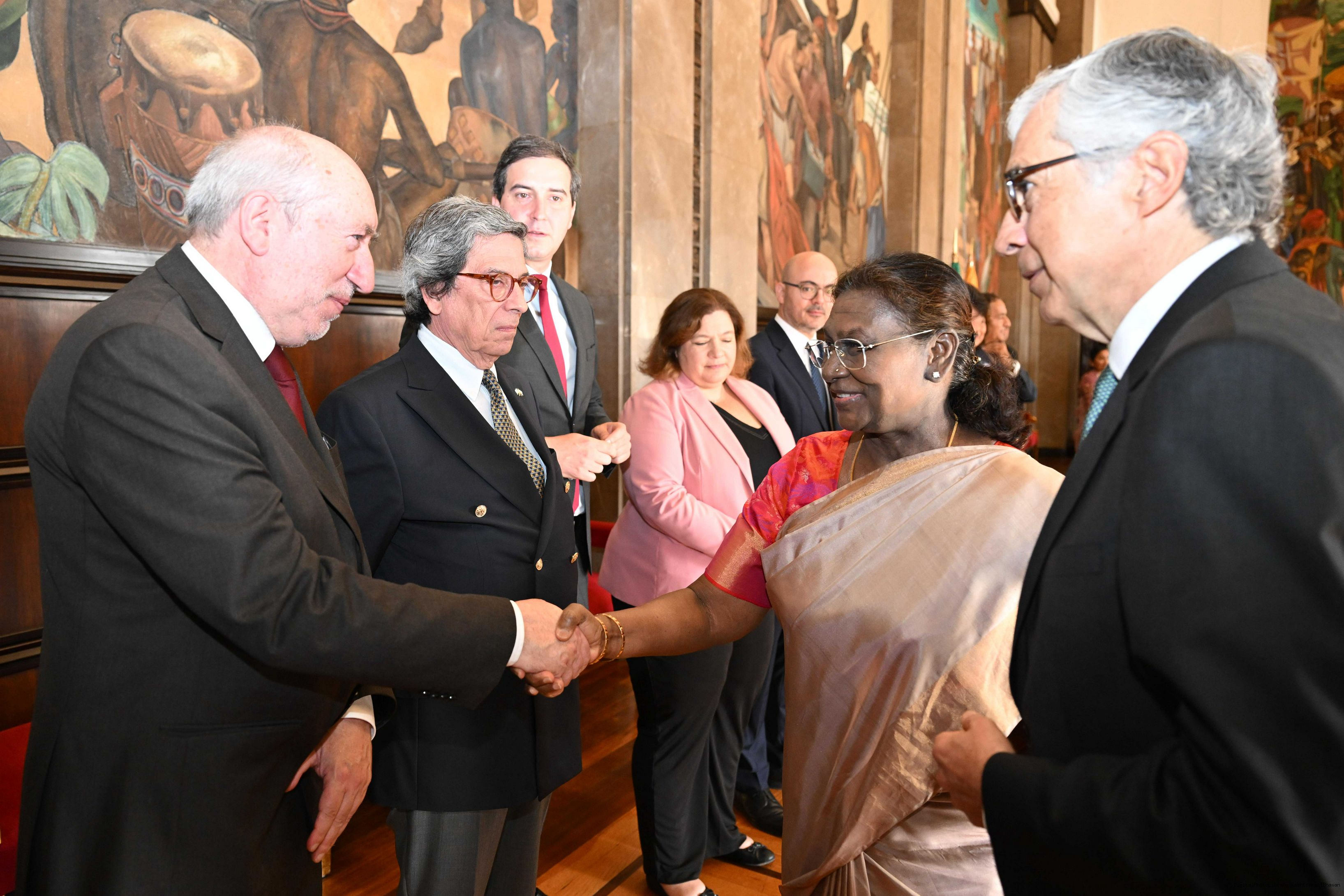 The High commissioner- designate of Mauritius, H.E. Mrs. Sheilabai Bappoo, G.O.S.K. presenting her credentials to the President of India, Smt Droupadi Murmu at Ashok Hall of Rashtrapati Bhavan in New Delhi on November 25, 2025.