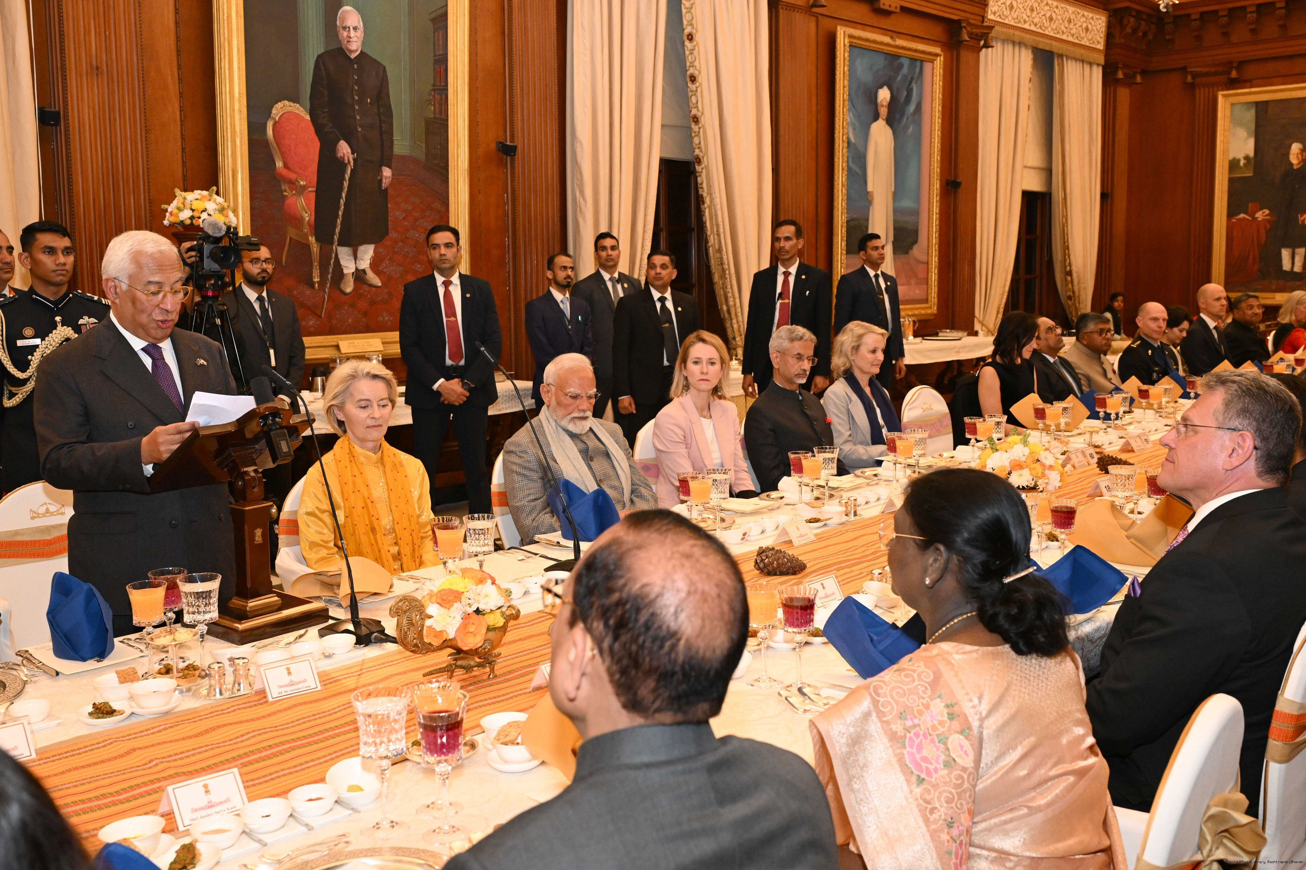 The President of India, Smt Droupadi Murmu hosted a banquet in the honour of the Chief Guests of the 77th Republic Day Celebrations, H. E. António Costa, President of the European Council and H. E. Ms Ursula von der Leyen, President of the European Commission at Rashtrapati Bhavan on January 27, 2026.