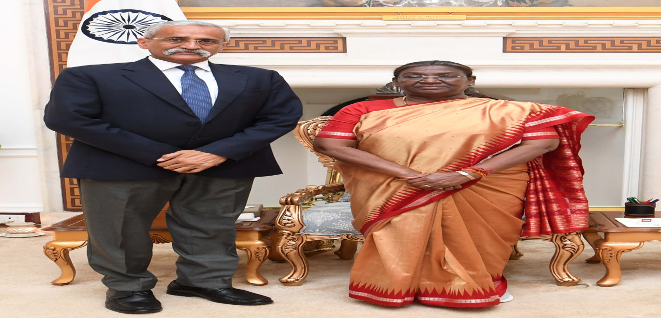Shri Pankaj Kumar Singh (IPS 88 RJ), Deputy National Security Adviser (Internal Affairs), NSCS meeting with the President of India Smt Droupadi Murmu at Rashtrapati Bhavan on March 7, 2024.