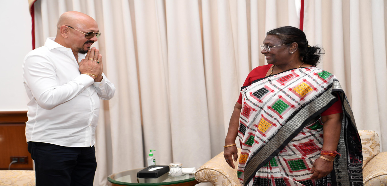 The President of India Smt Droupadi Murmu Meeting and interaction with Shri Pankaj Mahanta Producer Shri Boloram Das Actor and Smt Mamoni Mahanta at Rashtrapati Bhavan on April 1, 2024.