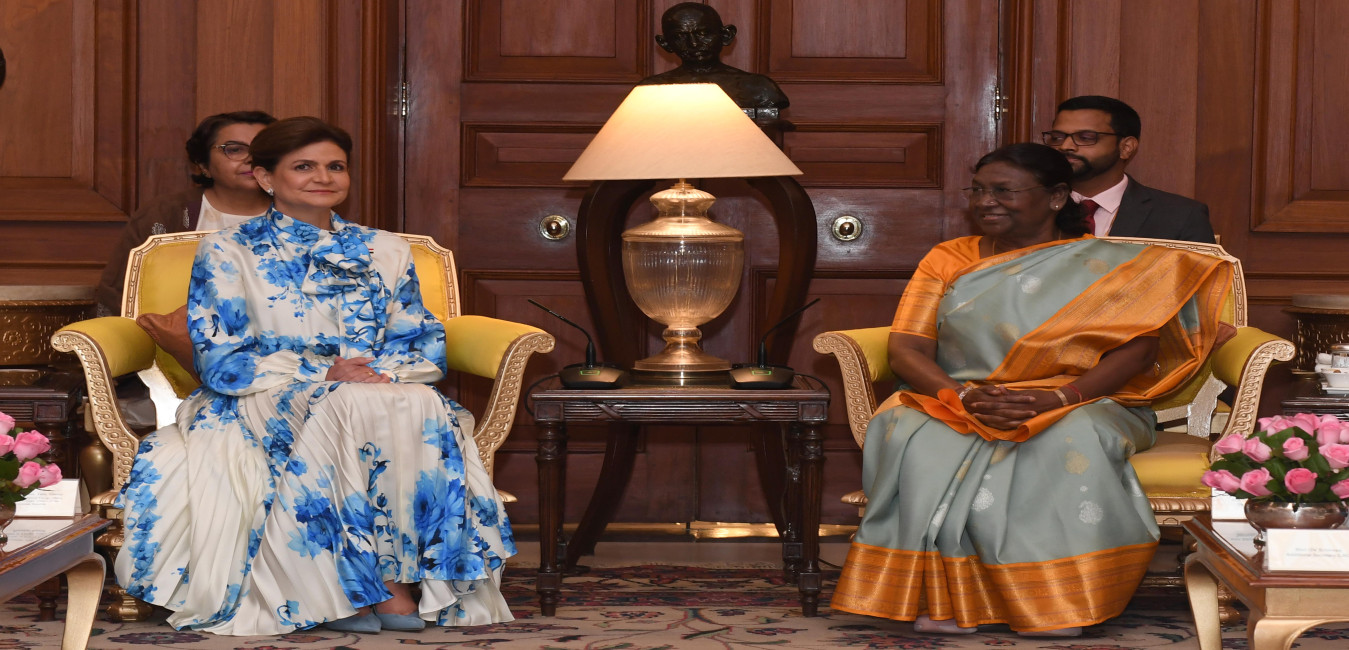 The Vice President of Dominican Republic, H.E. Ms Raquel Peña Rodríguez called on the President of India, Smt Droupadi Murmu at Rashtrapati Bhavan on October 03, 2023.