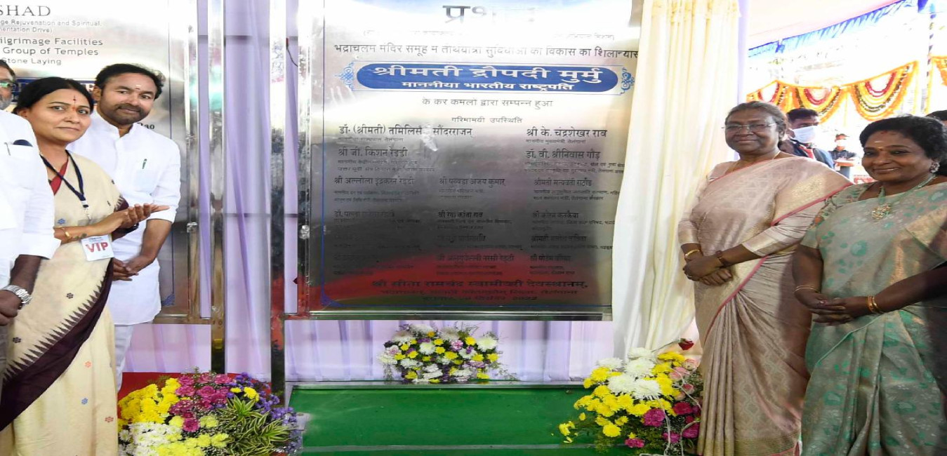 The President of India, Smt. Droupadi Murmu offered prayers at Sri Sitaramachandra Swamy temple and laid foundation stone of the project "Development of Pilgrimage facilities at Bhadrachalam Group of Temples under Pilgrimage Rejuvenation and Spiritual, Heritage Augmentation Drive (PRASHAD)", at Bhadrachalam on December 28, 2022.