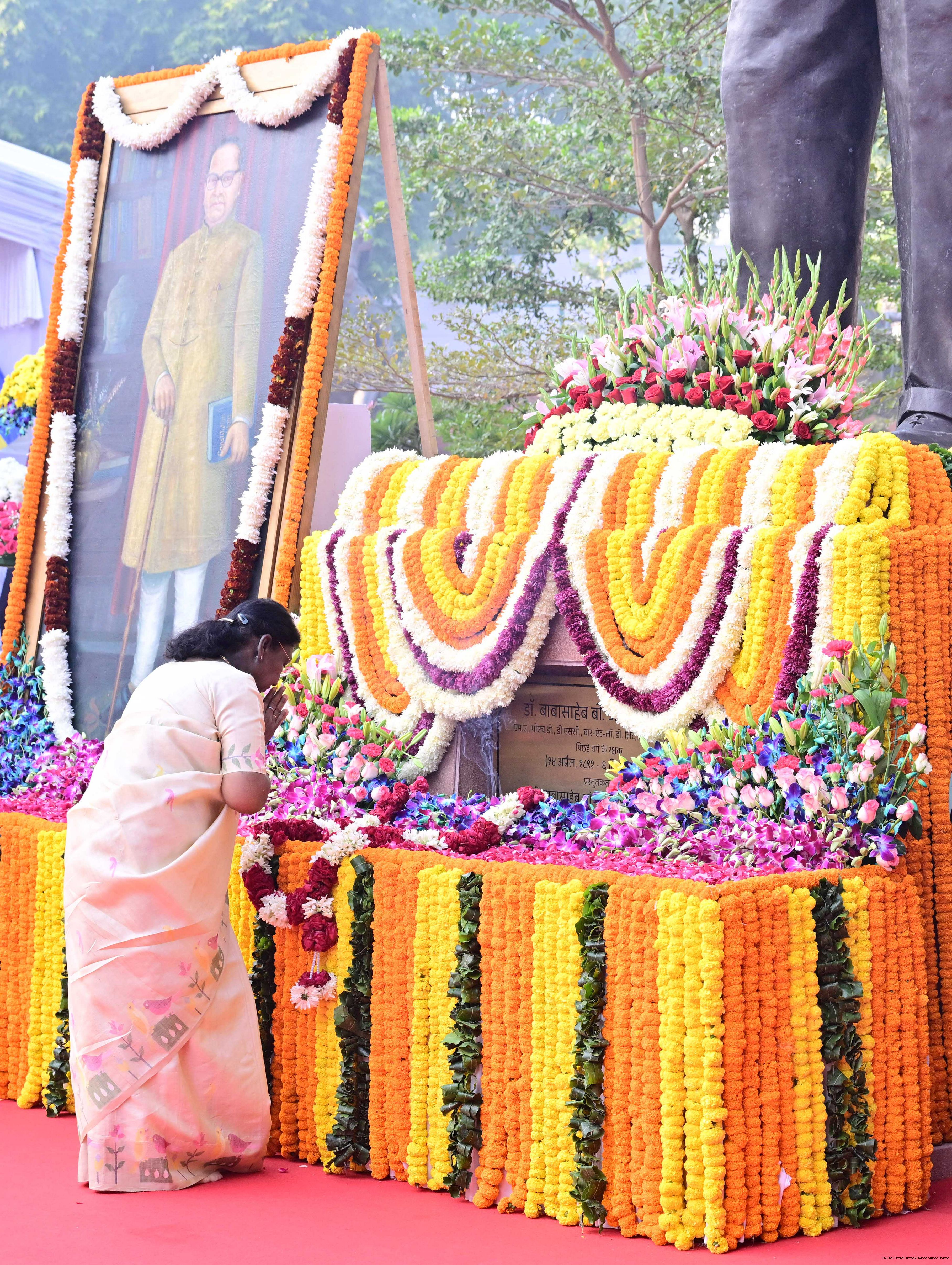 The President of India, Smt. Droupadi Murmu paid floral tributes to Babasaheb Dr B.R. Ambedkar on his Mahaparinirvan Diwas at Parliament House premises, New Delhi on December 06, 2025.