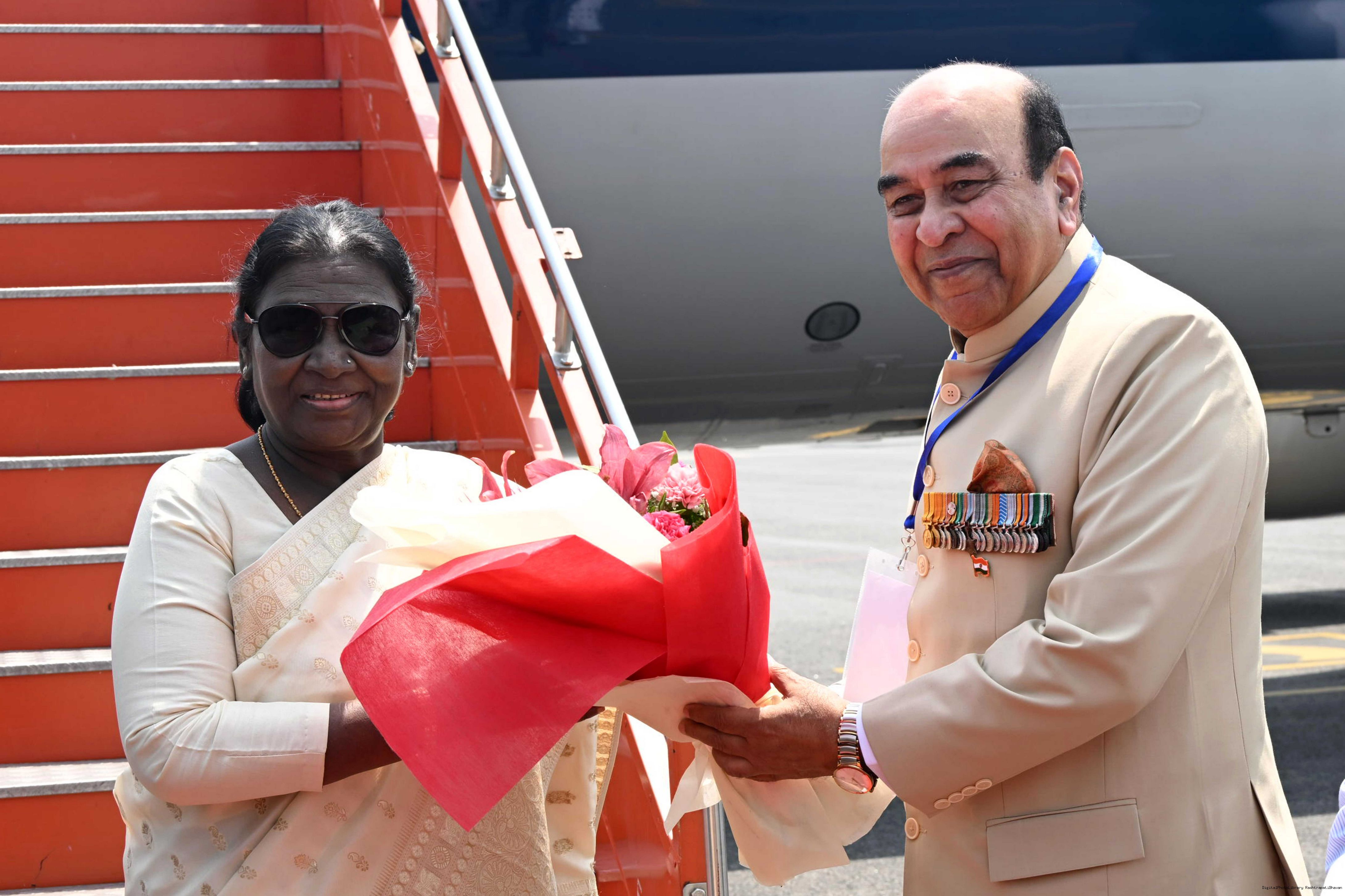 The Governor of Bihar, Lt Gen Syed Ata Hasnain (Retd.) received the President of India, Smt Droupadi Murmu on her arrival at Gaya, Bihar on March 31, 2026.