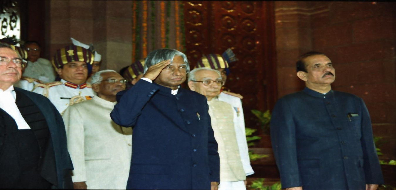 The President of India, Shri K R Narayanan at the Swearing-in-Ceremony of the Elected-President, Dr A P J Abdul Kalam at the Parliament House in New Delhi on July 25, 2003