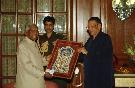 The President of India, Shri K R Narayanan with the Members of Shri Dharmic Leela Committee Parade Ground at the Committee Room of Rashtrapati Bhavan in New Delhi on Oct 16, 2001