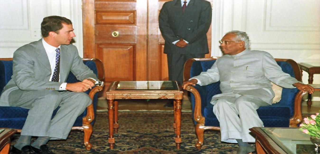 The Crown Prince of Spain, H R H Felipe De Borbon calling on the President of India, Shri K R Narayanan at the North Drawing Room of Rashtrapati Bhavan in New Delhi on Sep 29, 1997