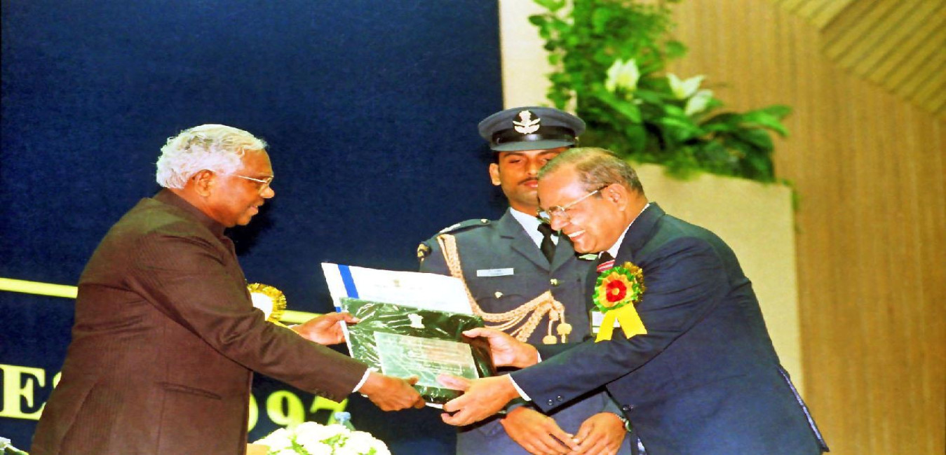 The President of India, Shri K R Narayanan presenting the National Awards in the Fields of Welfare of People with Disabilities at Vigyan Bhavan in New Delhi on Dec 03, 1997