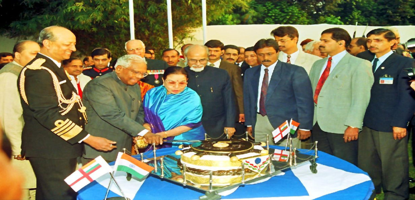 The President of India, Shri K R Narayanan at the Reception by the Chief of the Naval Staff at Navy House, 12, Rajaji Marg in New Delhi on Dec 04, 1997