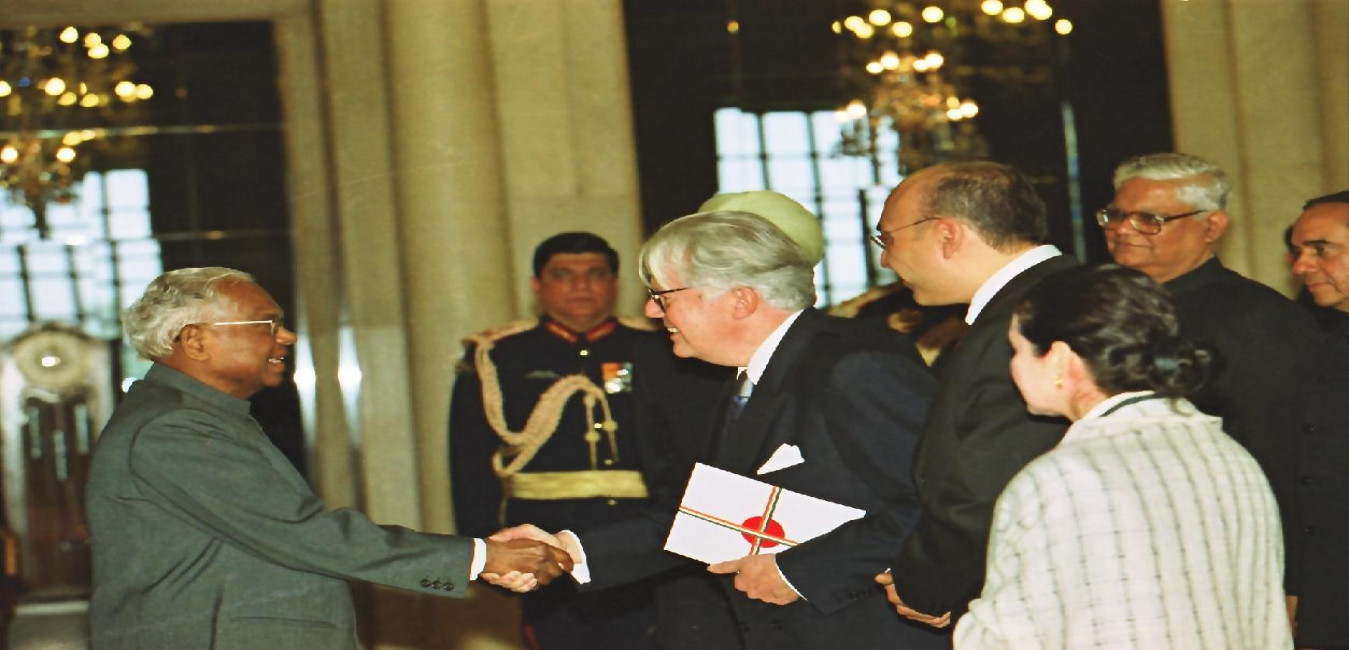 The Ambassador-Designate of Mexico to India, His Excellency Mr Julio Faesler Carlisle presenting his credentials to the President of India, Shri K R Narayanan at the Ashok Hall of Rashtrapati Bhavan in New Delhi on Jan 21, 2002