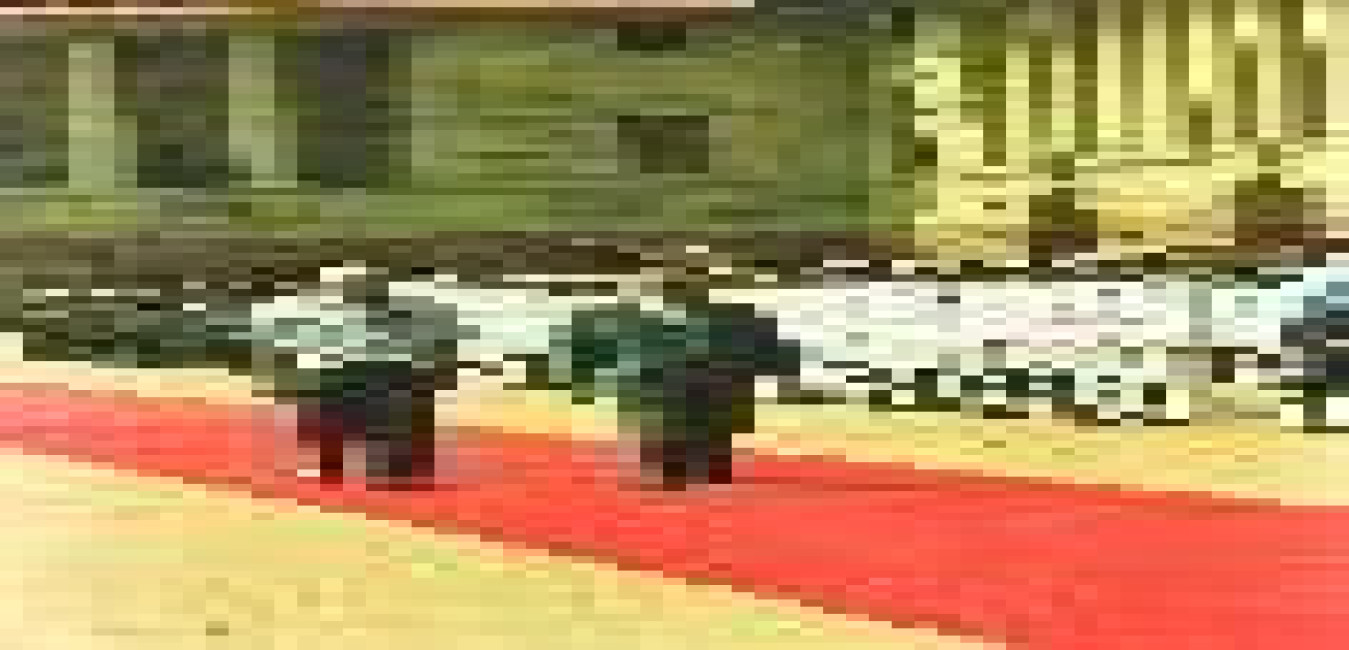 The President of India, Shri K R Narayanan at the Ceremonial Reception of President of the Republic of Maldives, HE Mr Maumoon Abdul Gayoom and his wife Mme Nasreena Gayoom at the Forecourt of Rashtrapati Bhavan in New Delhi on August 21, 2000
