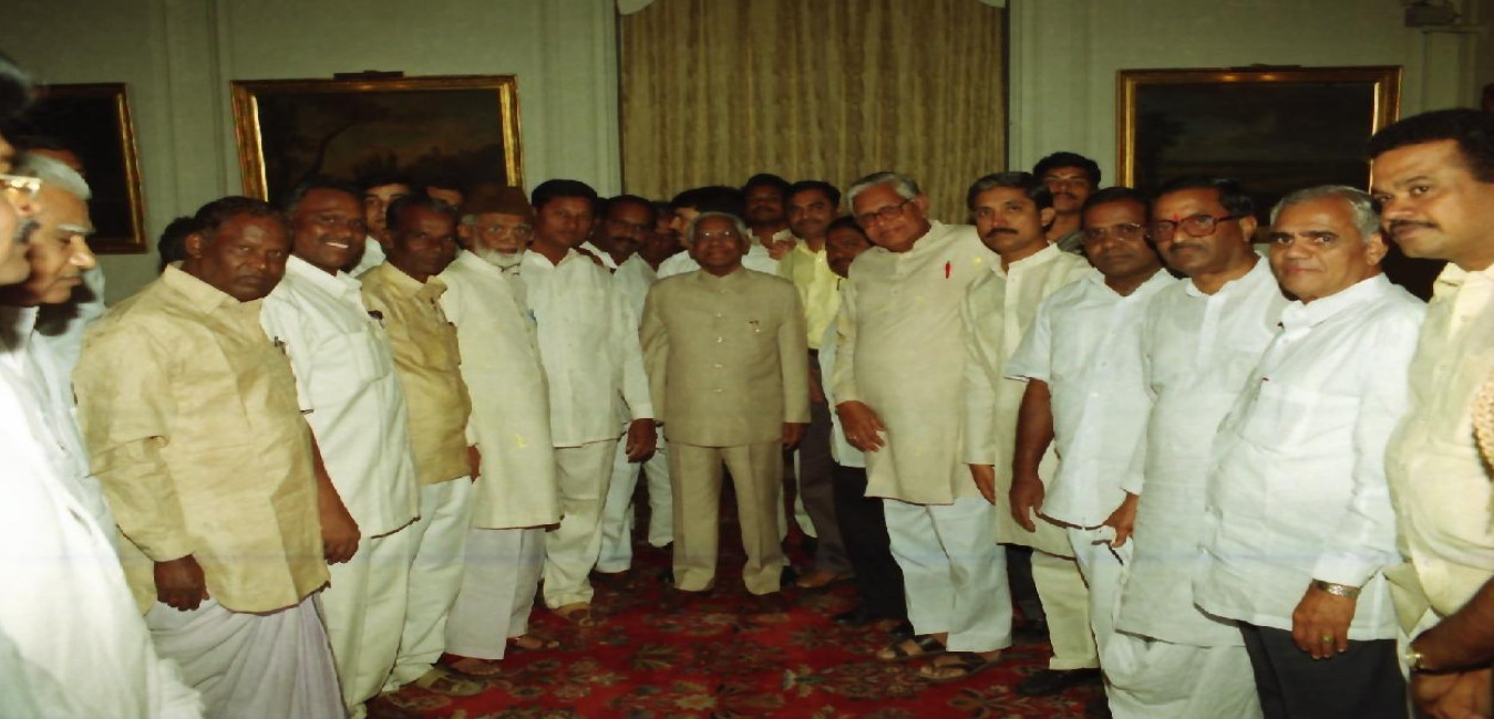 The MLAs Ex-MPs and others Congress Leaders of Andhra Pradesh belonging to Telangana Region led by Shri Palavi Govardhan Reddy calling on the President of India, Shri K R Narayanan at the Yellow Drawing Room of Rashtrapati Bhavan in New Delhi on Sep 21, 2000