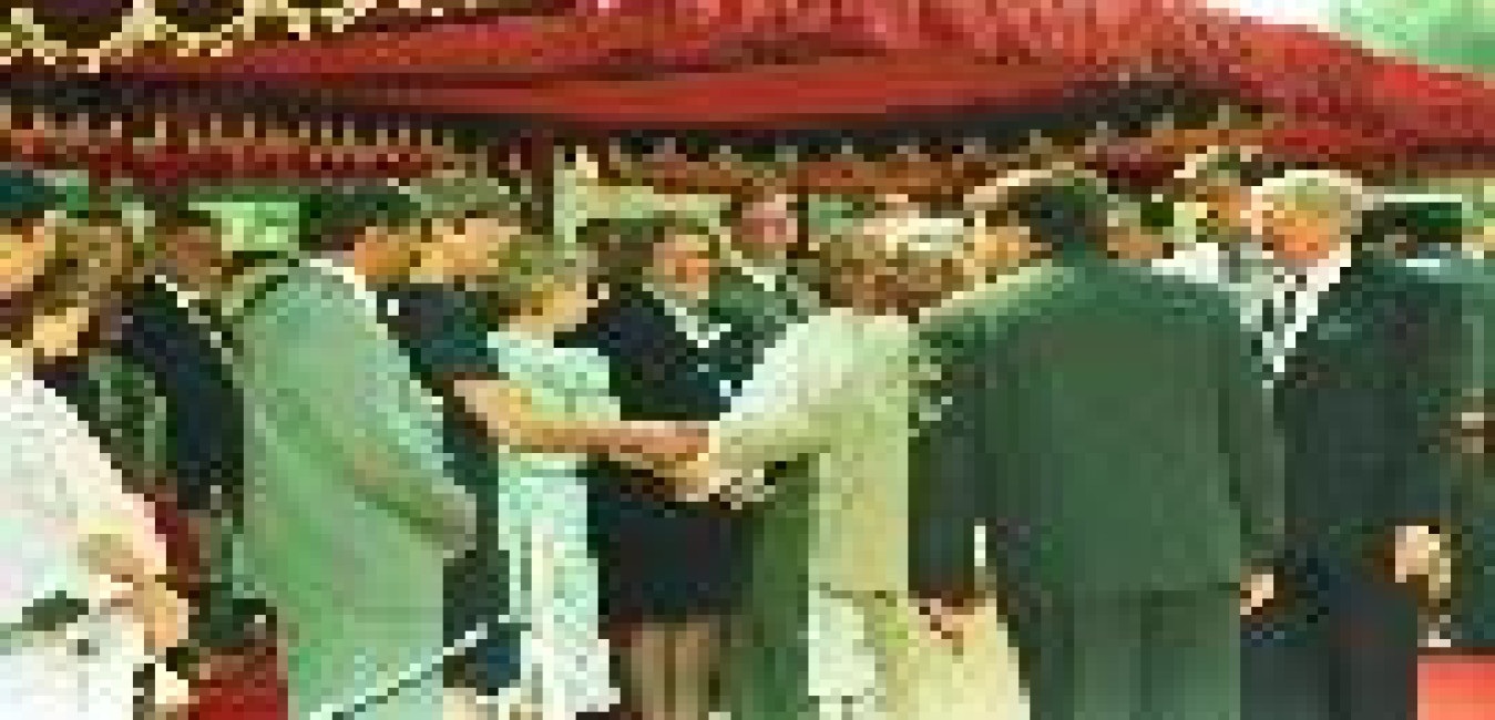 The President of India, Shri K R Narayanan at the Ceremonial Reception of the Governor General of Canada, HE Mr Romeo LeBlanc at the Forecourt of Rashtrapati Bhavan in New Delhi on March 30, 1998