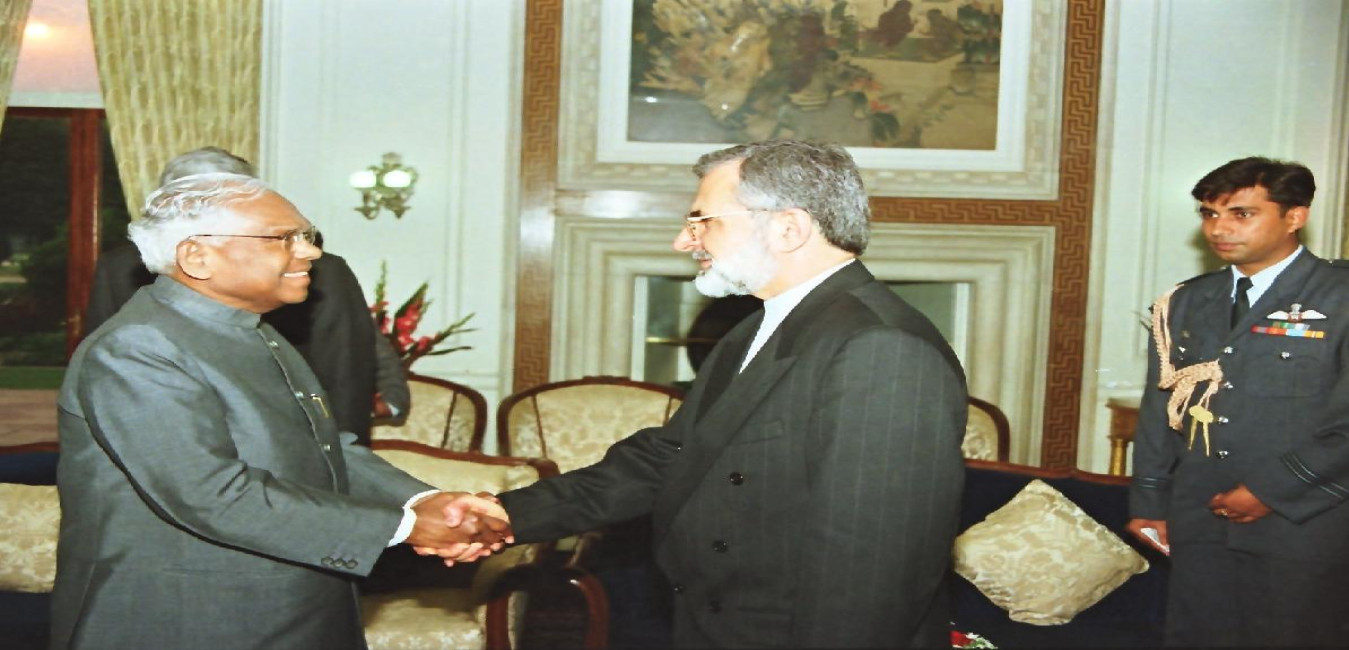 The Foreign Minister of the Islamic Republic of Iran, HE Dr Seyed Kamal Kharrazi calling on the President of India, Shri K R Narayanan at the Morning Room of Rashtrapati Bhavan in New Delhi on Feb 24, 1999