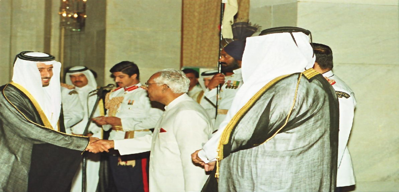 The Emir of the State of Qatar, His Highness Sheikh Hamad Bin Khalifa Al Thani calling on the President of India, Shri K R Narayanan at the North Drawing Room of Rashtrapati Bhavan in New Delhi on April 07, 1999