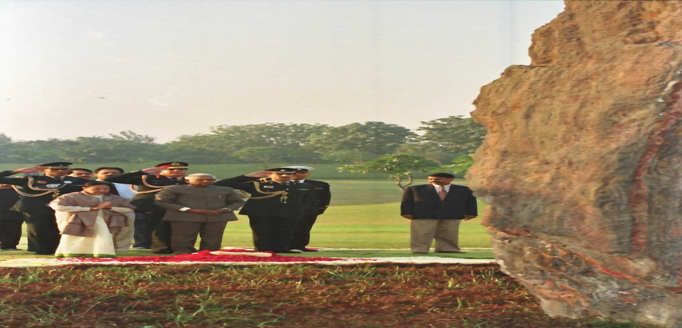 The President of India, Shri K R Narayanan paying Floral Tributes at the Samadhi of the Former Prime Minister of India, Late Smt Indira Gandhi to Commemorate her Birth Anniversary at Shakti Sthal in New Delhi on Nov 19, 1999