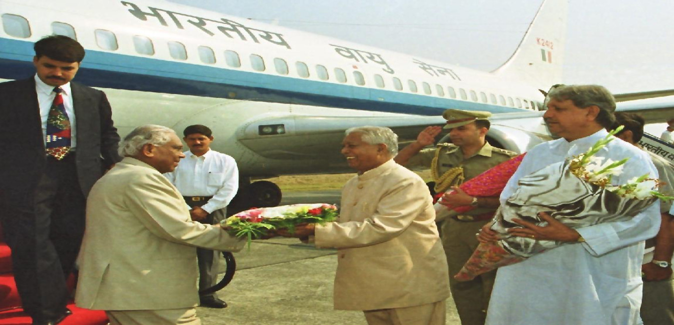 The President of India, Shri K R Narayanan being welcomed by the Governor of Uttar Pradesh, Shri Suraj Bhan at Bareilly Airport in Uttar Pradesh on Oct 24, 2000