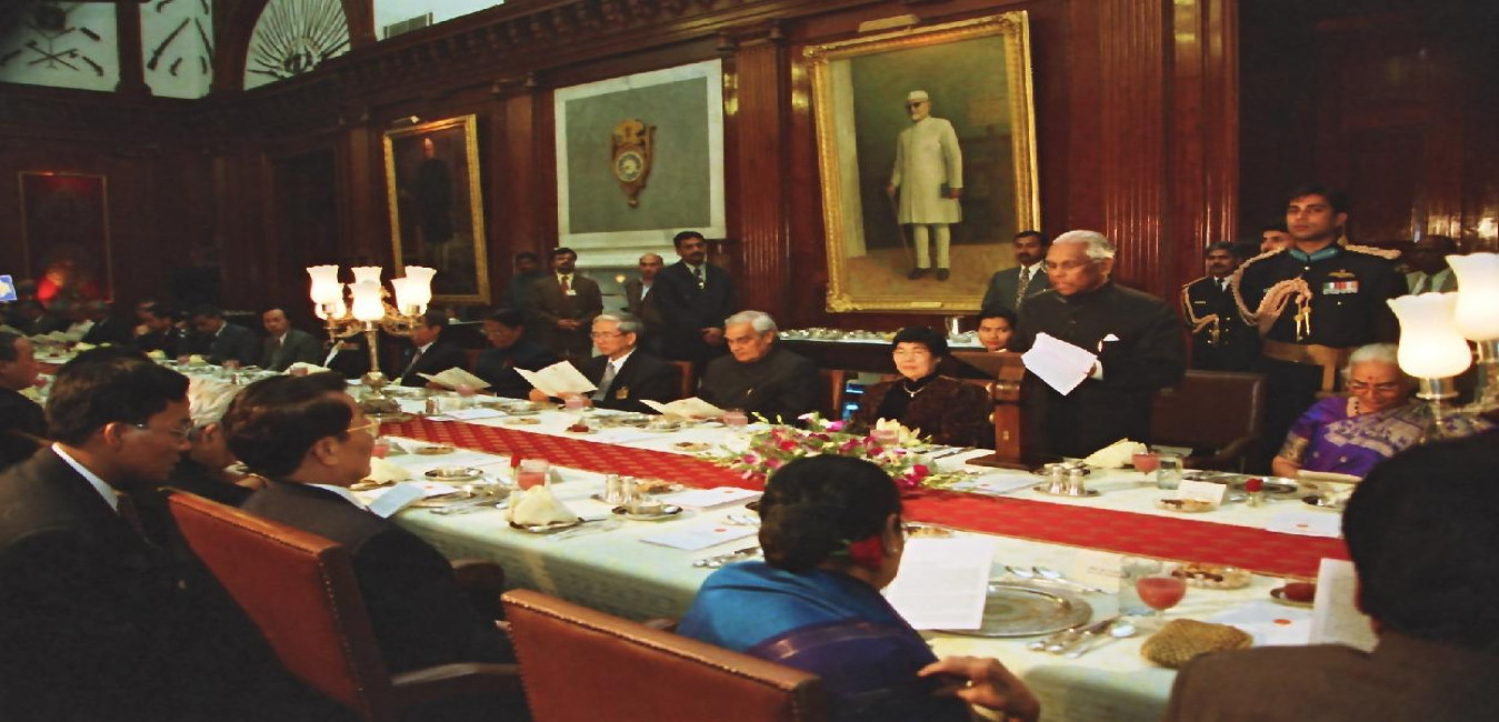 The President of India, Shri K R Narayanan at the Banquet Hosted in Honour of the Distinguished Guests of the President of the Socialist Republic of Vietnam, HE Mr Tran Duc Luong and Mrs Nguyen Thi Vinh at the Banquet Hall of Rashtrapati Bhavan in New Delhi on Dec 01, 1999