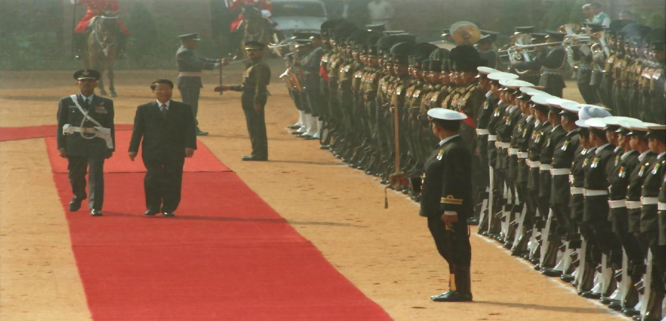 The President of India, Shri K R Narayanan at the Ceremonial Reception of the President of the Socialist Republic of Vietnam, HE Mr Tran Duc Luong and Mrs Nguyen Thi Vinh at the Forecourt of Rashtrapati Bhavan in New Delhi on Dec 01, 1999