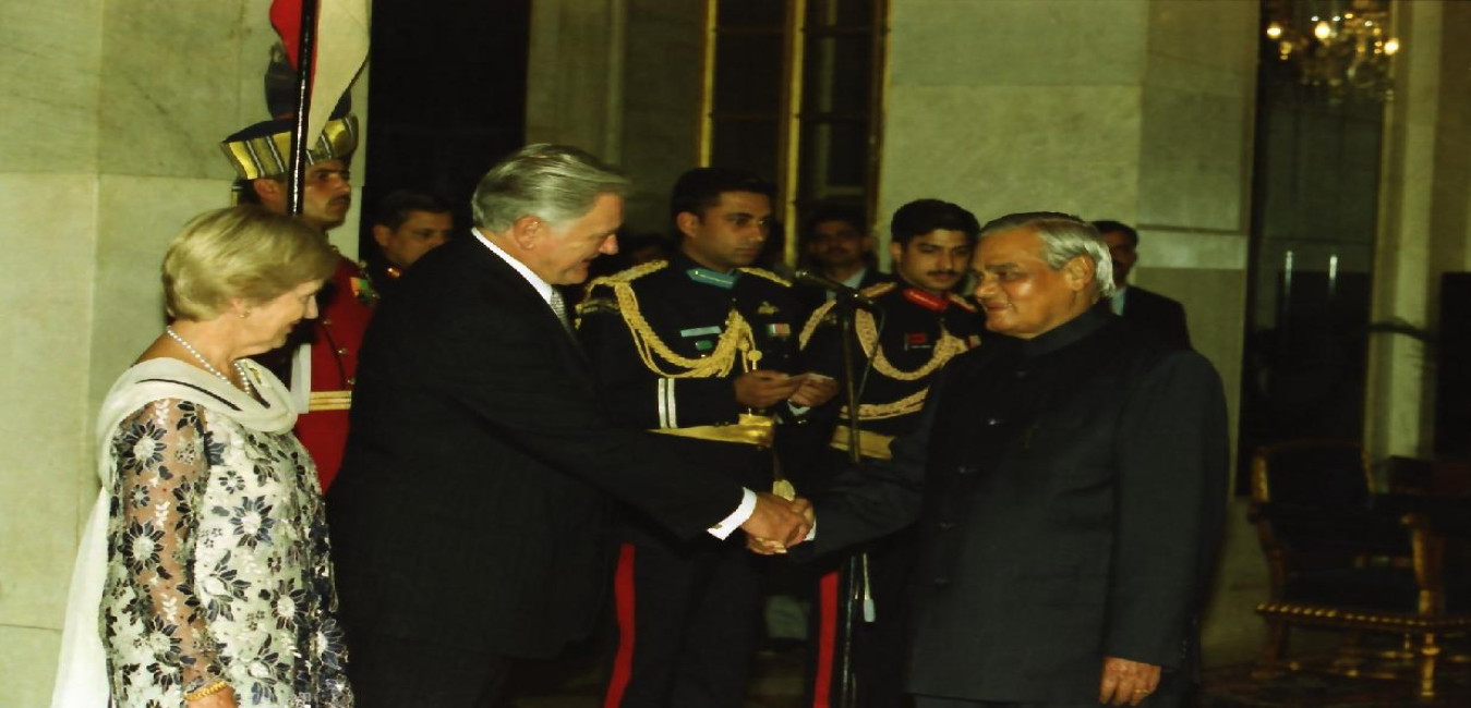 The President of India, Shri K R Narayanan at the Banquet Hosted in Honour of the President of the Republic of Lithuania, HE Mr Valdas Adamkus and his wife Alma Adamkiene at the Banquet Hall of Rashtrapati Bhavan in New Delhi on Feb 20, 2001